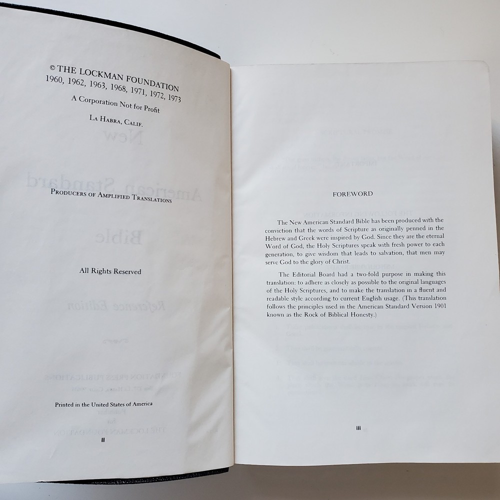 1973 Foundation Press New American Standard Bible Reference Genuine Leather. **There are a few underlining pen marks. I did not look through every page. I did not see many but I did see a few. Please see photos for details.** Thank you for shopping at The Real Housewife Department Store! Refunds given on returned merchandise only.