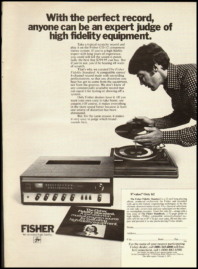 This is a 1973 Vintage Ad for Fisher CO-12 component stereo system. This is an original advertisement featured in Playboy magazine. Size: approx. 8 x 11" (During ad campaigns most ads were produced one time only and never reproduced commercially again making them great pieces of history that reflect the products and services of the day.) Remember we ship a free bonus ad with every purchase! This ad is rated 'Very Good' on a scale of Mint : perfect condition, no flaws Excellent : almost mint , slight wear due to aging Very Good :some wear due to aging, a few slight flaws that do not detract from the integrity of the ad Good : wear due to aging, some flaws that might effect the ads integrity. These ads when listed will often be offered at a discount. Fair: self explanatory, ads in this state will only be listed if their historical importance outweighs their condition. Because of the range of paper quality and the degree of care or neglect these ads have recieved over the years, some ads will have aged more than others. Any ads whose paper have become fragile or brittle will be so noted in the description. This is an original ad from a vintage magazine. It is not a reproduction or reprint. As old print periodicals become more scarce so do the wonderful ads that gave color and life to those remembered times. These ads look terrific in frames and as part of a collection help us recall and document past times. Collect them, give them as gifts, vintage ads are much more than pretty pictures and sales pitches, they are living reminders of who we used to be. We ship a FREE bonus ad with each vintage ad purchase. Combined shipping available for multiple ad purchases. Up to three ads shipped for the price of one! (If ordering multiple ads please let us invoice you first before paying, so we are able to give the discount on shipping.) Our ads are shipped in plastic sleeves in sturdy shipping containers. Satisfaction guaranteed. Return within 7 days and your money will be refunded including return shipping charges . Thank you for stopping by! Please visit our Ebay 'sister' store at Mott's Studio Vintage Ads!