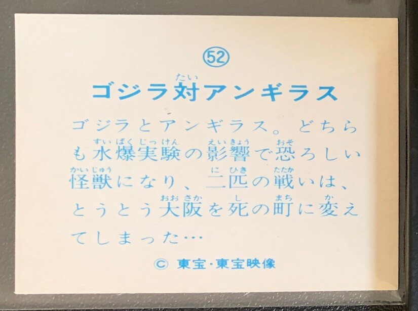 This vintage 1973 Godzilla card is a must-have for any kaiju fan! The artwork on Anguirus #52 is stunning, with vibrant colors and fantastic detail. It’s in great condition for its age, and the nostalgia factor is off the charts. A perfect addition to any collector’s set—I couldn’t be happier with this piece of Toho history!