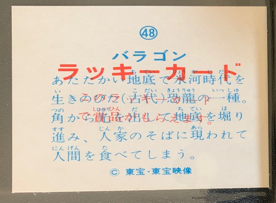 1973 Godzilla Toho kaiju card Baragon red ink back #48 vintage Amada
