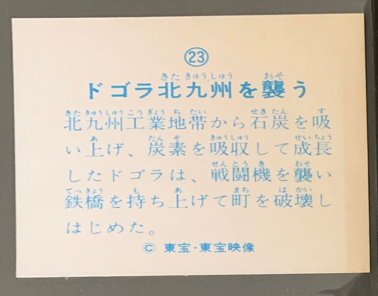 This vintage 1973 Godzilla card is a must-have for any kaiju collector! The vibrant colors and classic Toho artwork bring Dogora to life, and the retro design captures the era perfectly. Great condition, full of nostalgia—an absolute gem for fans of Japanese monster films. So happy to add this piece to my collection!