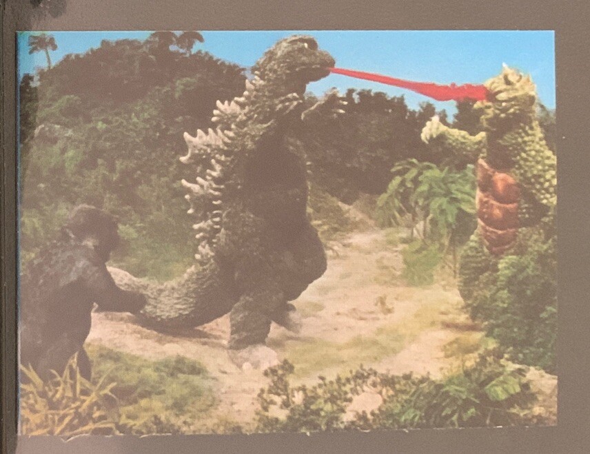 This vintage 1973 Godzilla card is a must-have for any kaiju collector! The artwork is stunning, capturing the epic battle between Godzilla and Biollante in bold, vibrant colors. The card's condition is impressive for its age, and the nostalgic Toho branding adds serious collector appeal. A true gem for fans of classic monster battles!