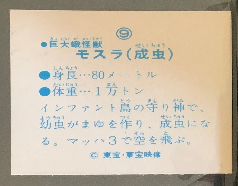 1973 vintage GODZILLA Amada Toho kaiju Card Japanese Mothra #9B