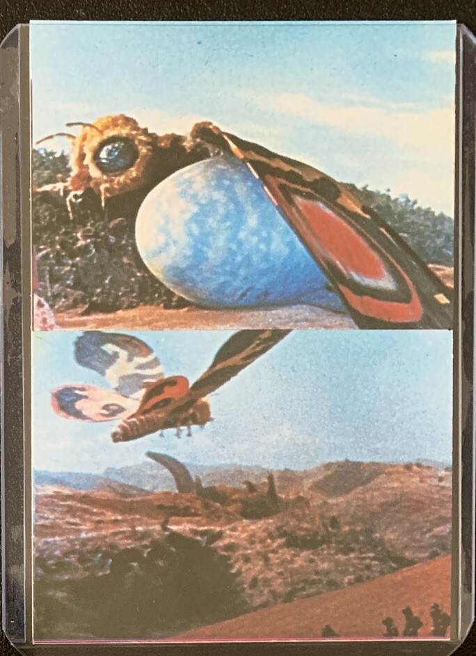 This vintage Godzilla card is a must-have for any kaiju fan! The artwork is stunning, and the rarity of the Mothra panels makes it a true collector's gem. The colors are vibrant, and the nostalgic 1973 design takes me back to classic Toho films. Perfect condition, highly recommended!