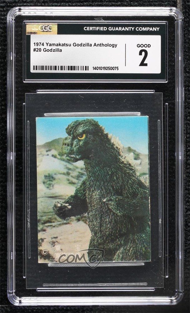 1974 Yamakatsu Mechagodzilla + Godzilla King Caesar Pull Pack - [Base] #20 Godzilla Graded CGC 2 Good COMC Item: 189997722 - Non-Sports Card - Featuring Godzilla Search for more: 1974 Yamakatsu Mechagodzilla + Godzilla King Caesar Pull Pack Search for more: 1974 Yamakatsu Mechagodzilla + Godzilla King Caesar Pull Pack - [Base] View all of our Listings Auctions Buy It Now About Us Located in the beautiful Pacific Northwest, COMC (Check Out My Cards) is the world's largest consignment service for trading card singles. More than 10,000 people have used our consignment service to list over 50 million trading cards. Find out how we can help you consign your items on eBay by contacting us through eBay messaging. COMC -- "The Safe & Easy Way to Buy & Sell" Raw Condition for Modern Cards Unless otherwise noted, raw modern cards are listed in Near Mint-Mint condition or better. A NM-MT card appears to be Mint at first glance, but upon closer inspection, may exhibit some of the following: minor print defects (e.g. roller marks, print line, dimple), minor scratches, slight edge wear, and slight corner wear. Centering is clearly visible in the images provided and does not factor into our condition assessment. Raw Condition for Vintage Cards Unless otherwise noted, raw vintage cards are listed in Excellent condition or better. An EX card may exhibit some of the following: minor rounding of corners, surface wear, print defects, light scratches, and slight edge wear/chipping. Centering is clearly visible in the images provided and does not factor into our condition assessment. Domestic Shipping Combined shipping for multiple items is available. To receive combined shipping, please ensure all desired items are in your eBay shopping cart before proceeding to checkout. eBay limits orders to 40 items per order. We automatically combine multiple orders placed on the same day. If you place multiple orders on the same day, please contact us to request a refund of applicable shipping costs. Signature confirmation may be required on invoices over $400. All cards are protected and shipped securely. International Shipping COMC offers eBay's International Shipping (EIS) for international orders under $2,500* (see country exceptions below). All duties and import fees are paid at checkout; in the rare event that there are additional import fees upon delivery, these are borne by the buyer. EIS packages route through a shipping hub in Erlanger, KY before shipping to their final destination. Please note that EIS does not allow for combined shipments. The shipping rates are determined by eBay and cannot be adjusted. *Maximum sale price exceptions: Colombia, Kuwait ($2,000); Taiwan ($1,539); Chile, Costa Rica, Guatemala, Honduras, Trinidad and Tobago ($1,000); Antigua and Barbuda, Aruba, Belize, Dominica, Grenada, Philippines, Saint Kitts and Nevis, Saint Lucia, Montserrat, Turks and Caicos Islands ($500); Dominican Republic, El Salvador ($200). Please request a shipping quote through eBay messaging for orders that exceed the maximum sale price supported by eBay's International Shipping. You will be responsible for all duties and import fees for international orders shipped outside the EIS. All cards are protected and shipped securely. Payment COMC does not accept offers on our cards through our eBay storefront. COMC utilizes eBay’s managed payments system. If you are experiencing difficulties making a payment, please contact eBay for assistance. Return Policy Returns are only accepted on the rare occasion the item is not as described. If you are making a return, please initiate the return process through eBay so a mailing label can be provided for you. Prior to listing, our expert team carefully assessed this item to represent it accurately. Please review the description and high-definition images prior to purchasing to ensure this item meets your satisfaction. We welcome you to contact us if you have further questions about this item. Trust and Integrity COMC carefully assesses each item consigned to us to prevent fraudulent items from entering the marketplace. If you believe an item offered on COMC may be fraudulent, please contact us with details so we can investigate the issue. Items we determine are outside our supported items policy may be removed. Last Modified: 7/9/2025 4:36:30 PM PDT