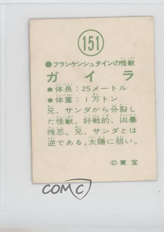This vintage 1974 Yamakatsu Godzilla card is a must-have for collectors! The Half Human #151 design captures classic kaiju charm with vibrant colors and crisp details. A fantastic addition to any Godzilla or vintage card collection, it's in great condition and brings nostalgic monster movie magic. COMC makes purchasing easy with their reliable service.