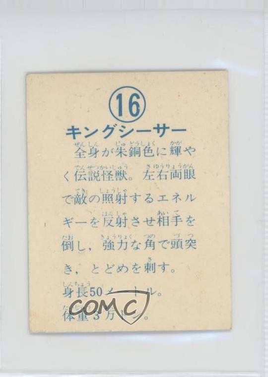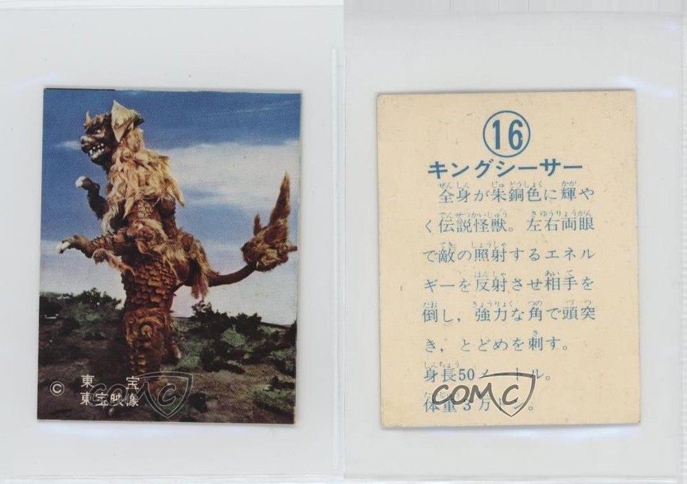 1974 Yamakatsu Godzilla Anthology - [Base] #16 King Caesar COMC Item: 185131507 - Non-Sports Card - Featuring King Caesar Search for more: 1974 Yamakatsu Godzilla Anthology Search for more: 1974 Yamakatsu Godzilla Anthology - [Base] View all of our Listings Auctions Buy It Now About Us Located in the beautiful Pacific Northwest, COMC (Check Out My Cards) is the world's largest consignment service for trading card singles. More than 10,000 people have used our consignment service to list over 50 million trading cards. Find out how we can help you consign your items on eBay by contacting us through eBay messaging. COMC -- "The Safe & Easy Way to Buy & Sell" Raw Condition for Modern Cards Unless otherwise noted, raw modern cards are listed in Near Mint-Mint condition or better. A NM-MT card appears to be Mint at first glance, but upon closer inspection, may exhibit some of the following: minor print defects (e.g. roller marks, print line, dimple), minor scratches, slight edge wear, and slight corner wear. Centering is clearly visible in the images provided and does not factor into our condition assessment. Raw Condition for Vintage Cards Unless otherwise noted, raw vintage cards are listed in Excellent condition or better. An EX card may exhibit some of the following: minor rounding of corners, surface wear, print defects, light scratches, and slight edge wear/chipping. Centering is clearly visible in the images provided and does not factor into our condition assessment. Domestic Shipping Combined shipping for multiple items is available. To receive combined shipping, please ensure all desired items are in your eBay shopping cart before proceeding to checkout. eBay limits orders to 40 items per order. We automatically combine multiple orders placed on the same day. If you place multiple orders on the same day, please contact us to request a refund of applicable shipping costs. Signature confirmation may be required on invoices over $400. All cards are protected and shipped securely. International Shipping COMC offers eBay's International Shipping (EIS) for international orders under $2,500* (see country exceptions below). All duties and import fees are paid at checkout; in the rare event that there are additional import fees upon delivery, these are borne by the buyer. EIS packages route through a shipping hub in Erlanger, KY before shipping to their final destination. Please note that EIS does not allow for combined shipments. The shipping rates are determined by eBay and cannot be adjusted. *Maximum sale price exceptions: Colombia, Kuwait ($2,000); Taiwan ($1,539); Chile, Costa Rica, Guatemala, Honduras, Trinidad and Tobago ($1,000); Antigua and Barbuda, Aruba, Belize, Dominica, Grenada, Philippines, Saint Kitts and Nevis, Saint Lucia, Montserrat, Turks and Caicos Islands ($500); Dominican Republic, El Salvador ($200). Please request a shipping quote through eBay messaging for orders that exceed the maximum sale price supported by eBay's International Shipping. You will be responsible for all duties and import fees for international orders shipped outside the EIS. All cards are protected and shipped securely. Payment COMC does not accept offers on our cards through our eBay storefront. COMC utilizes eBay’s managed payments system. If you are experiencing difficulties making a payment, please contact eBay for assistance. Return Policy Returns are only accepted on the rare occasion the item is not as described. If you are making a return, please initiate the return process through eBay so a mailing label can be provided for you. Prior to listing, our expert team carefully assessed this item to represent it accurately. Please review the description and high-definition images prior to purchasing to ensure this item meets your satisfaction. We welcome you to contact us if you have further questions about this item. Trust and Integrity COMC carefully assesses each item consigned to us to prevent fraudulent items from entering the marketplace. If you believe an item offered on COMC may be fraudulent, please contact us with details so we can investigate the issue. Items we determine are outside our supported items policy may be removed. Last Modified: 6/2/2025 4:13:50 PM PDT
