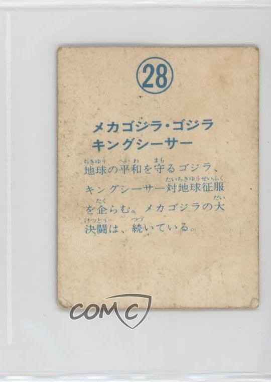 1974 Yamakatsu Godzilla Anthology - [Base] #28 King Caesar COMC Item: 185132233 - Non-Sports Card - Featuring King Caesar Search for more: 1974 Yamakatsu Godzilla Anthology Search for more: 1974 Yamakatsu Godzilla Anthology - [Base] View all of our Listings Auctions Buy It Now About Us Located in the beautiful Pacific Northwest, COMC (Check Out My Cards) is the world's largest consignment service for trading card singles. More than 10,000 people have used our consignment service to list over 50 million trading cards. Find out how we can help you consign your items on eBay by contacting us through eBay messaging. COMC -- "The Safe & Easy Way to Buy & Sell" Raw Condition for Modern Cards Unless otherwise noted, raw modern cards are listed in Near Mint-Mint condition or better. A NM-MT card appears to be Mint at first glance, but upon closer inspection, may exhibit some of the following: minor print defects (e.g. roller marks, print line, dimple), minor scratches, slight edge wear, and slight corner wear. Centering is clearly visible in the images provided and does not factor into our condition assessment. Raw Condition for Vintage Cards Unless otherwise noted, raw vintage cards are listed in Excellent condition or better. An EX card may exhibit some of the following: minor rounding of corners, surface wear, print defects, light scratches, and slight edge wear/chipping. Centering is clearly visible in the images provided and does not factor into our condition assessment. Domestic Shipping Combined shipping for multiple items is available. To receive combined shipping, please ensure all desired items are in your eBay shopping cart before proceeding to checkout. eBay limits orders to 40 items per order. We automatically combine multiple orders placed on the same day. If you place multiple orders on the same day, please contact us to request a refund of applicable shipping costs. Signature confirmation may be required on invoices over $400. All cards are protected and shipped securely. International Shipping COMC offers eBay's International Shipping (EIS) for international orders under $2,500* (see country exceptions below). All duties and import fees are paid at checkout; in the rare event that there are additional import fees upon delivery, these are borne by the buyer. EIS packages route through a shipping hub in Erlanger, KY before shipping to their final destination. Please note that EIS does not allow for combined shipments. The shipping rates are determined by eBay and cannot be adjusted. *Maximum sale price exceptions: Colombia, Kuwait ($2,000); Taiwan ($1,539); Chile, Costa Rica, Guatemala, Honduras, Trinidad and Tobago ($1,000); Antigua and Barbuda, Aruba, Belize, Dominica, Grenada, Philippines, Saint Kitts and Nevis, Saint Lucia, Montserrat, Turks and Caicos Islands ($500); Dominican Republic, El Salvador ($200). Please request a shipping quote through eBay messaging for orders that exceed the maximum sale price supported by eBay's International Shipping. You will be responsible for all duties and import fees for international orders shipped outside the EIS. All cards are protected and shipped securely. Payment COMC does not accept offers on our cards through our eBay storefront. COMC utilizes eBay’s managed payments system. If you are experiencing difficulties making a payment, please contact eBay for assistance. Return Policy Returns are only accepted on the rare occasion the item is not as described. If you are making a return, please initiate the return process through eBay so a mailing label can be provided for you. Prior to listing, our expert team carefully assessed this item to represent it accurately. Please review the description and high-definition images prior to purchasing to ensure this item meets your satisfaction. We welcome you to contact us if you have further questions about this item. Trust and Integrity COMC carefully assesses each item consigned to us to prevent fraudulent items from entering the marketplace. If you believe an item offered on COMC may be fraudulent, please contact us with details so we can investigate the issue. Items we determine are outside our supported items policy may be removed. Last Modified: 7/5/2025 9:27:58 AM PDT