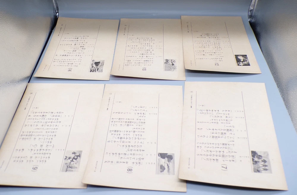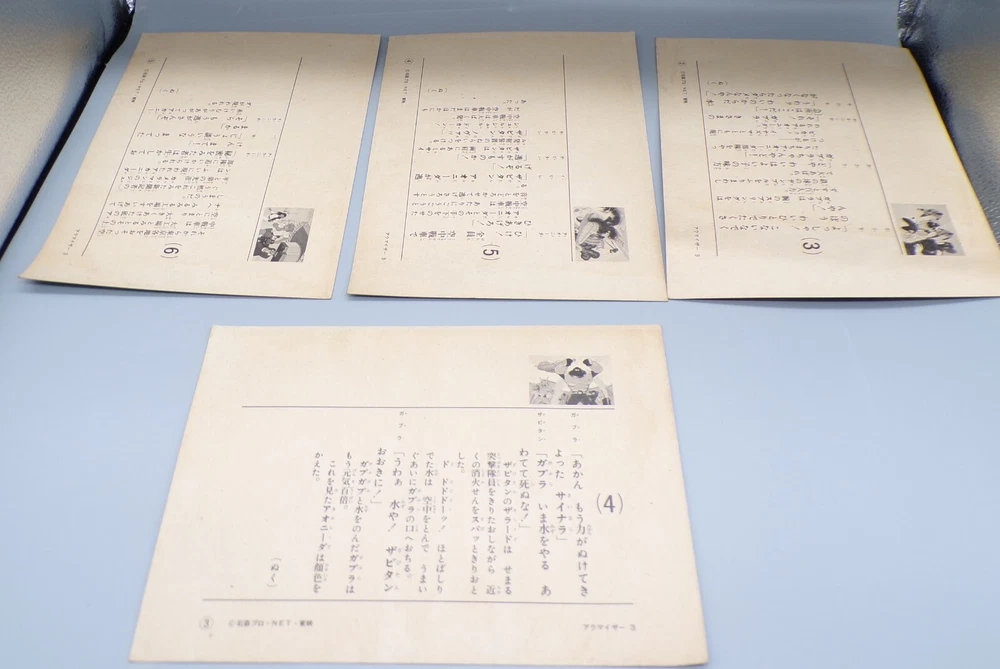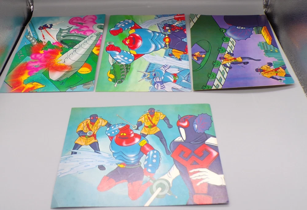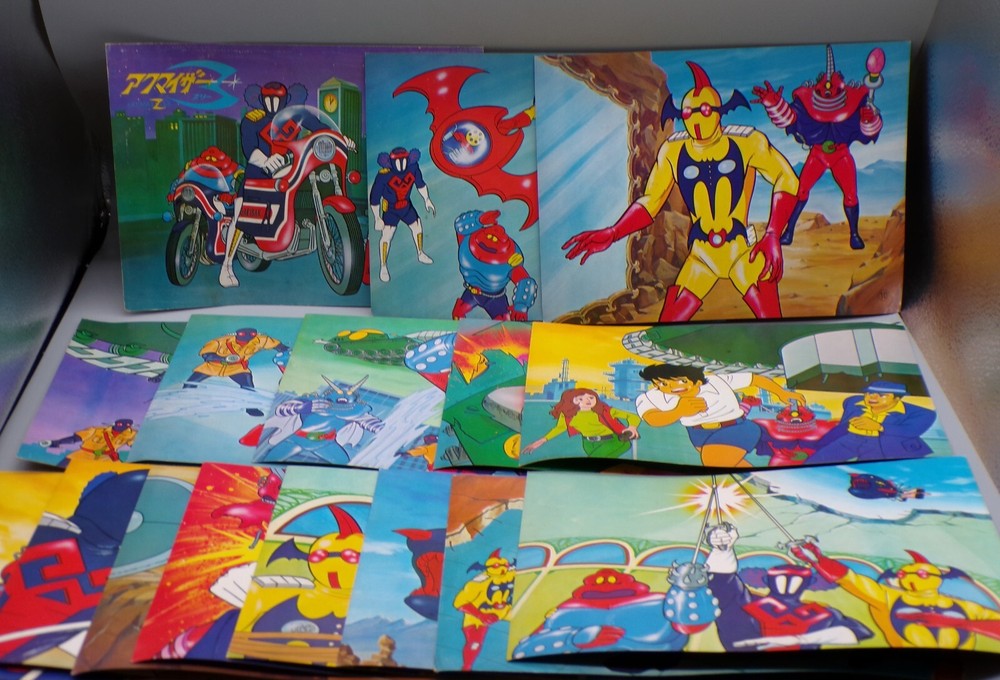 Rare vintage 1970's Japanese Toei Akumaizer 3 Kamishibai picture card set! This set of picture cards would have originally been packed with a flexidisc / sono sheet similar to a story book and record. These picture cards feature awesome anime style art of our heroes Zabitan, Evil, and Gabura fighting villains! The cards show some wear, with dings on the corners, as well as some bowing and spots of age related discoloration. Overall a fun addition to any Tokusatsu collection! PLEASE SEE PHOTOS FOR DETAILS. Check our other auctions for similar items & to save on shipping. All items are sold as-is and we do not accept returns, so please ask any questions you may have before bidding. ZERO FEEDBACK or other questionable bidders, please email to obtain permission to participate in our auctions BEFORE bidding. Please feel free to stop by our RETAIL LOCATION to view items in person.