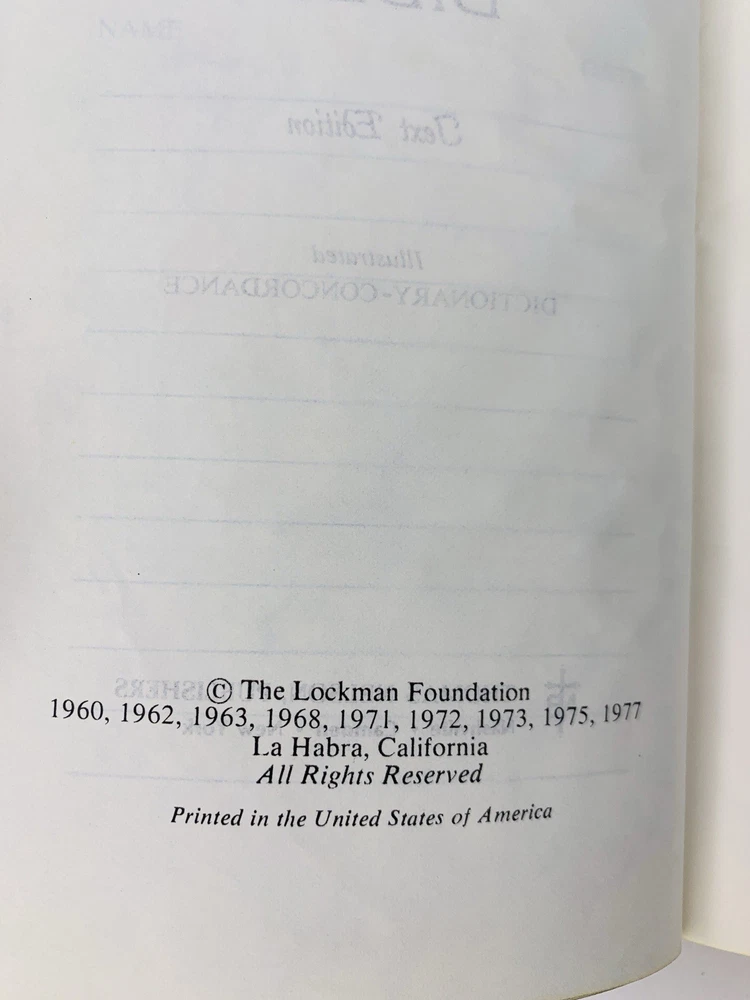 1977 NASB Bible Personal Study Text Edition Maroon Leather Nelson Red Letter This is a 1977 New American Standard Bible (NASB) published by Thomas Nelson , featuring the Personal Study Text Edition in a maroon leather-style binding. ๐น Translation: New American Standard Bible (NASB) ๐น Publisher: Thomas Nelson ๐น Edition: Personal Study Text (1977) ๐น Binding: Maroon leather-look (specify if itโs bonded leather or faux) ๐น Condition: Good vintage condition โ includes personalization on the cover. Pages are clean and fully intact. Cover shows normal age-related wear. This edition is ideal for those who appreciate the classic 1977 NASB translation in a simple and durable format. Vintage NASB Bible 1977, New American Standard Bible, NASB Thomas Nelson, Personal Study Text Edition, 1970s NASB Bible, Maroon Bible, NASB Leather Bible, Old NASB Bible Please see photos carefully. Why Choose Us: Fast Shipping: Shipped within 1 business day of receiving payment. Customer Satisfaction: We have a 100% positive feedback rating. Check our reviews to see why customers love buying from us! Money-Back Guarantee: If you're not satisfied with your purchase, we offer a 30-day money-back guarantee. Shipping and Handling: Low cost shipping World-Wide. Questions: If you have any questions about this item, please feel free to send us a message. We respond to inquiries promptly and are happy to provide any additional information you may need. _____________________________ This Old Bookhouse Fall In Love With Words From The Past Learn More About This Store! __________________________________ ๐ค