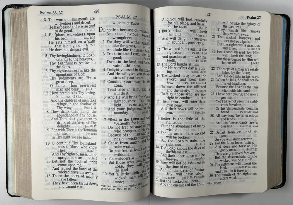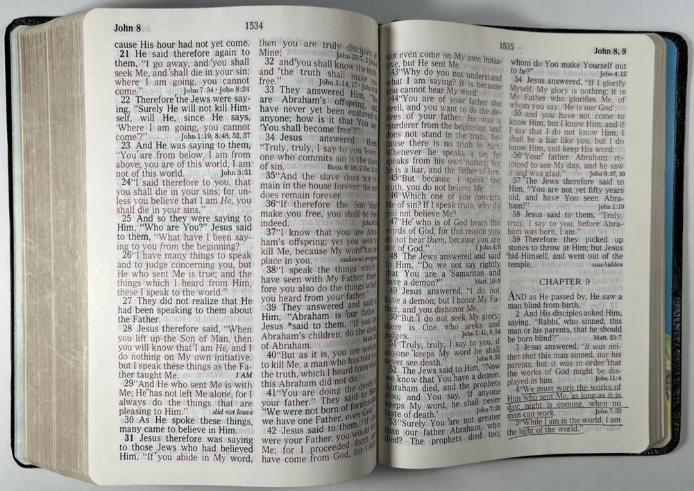 The Bible arrived exactly as described, and at a fair price. It was packaged very well so the Bible would not receive damage during the shipping process. Also, the seller shipped the Bible promptly, and it arrived quickly. Highly recommend this seller.