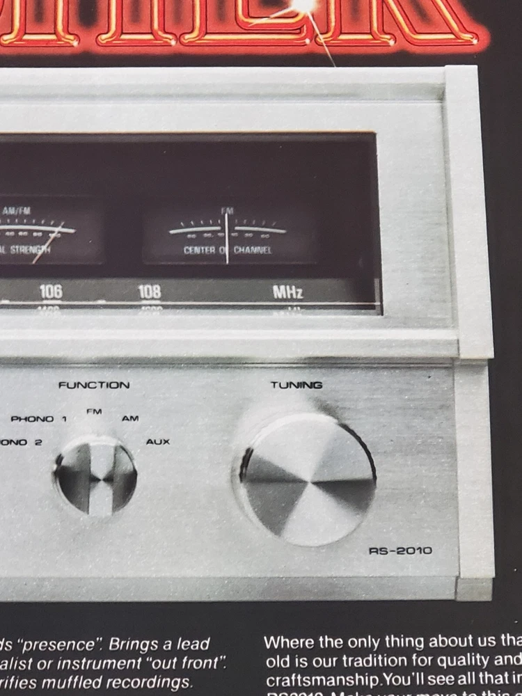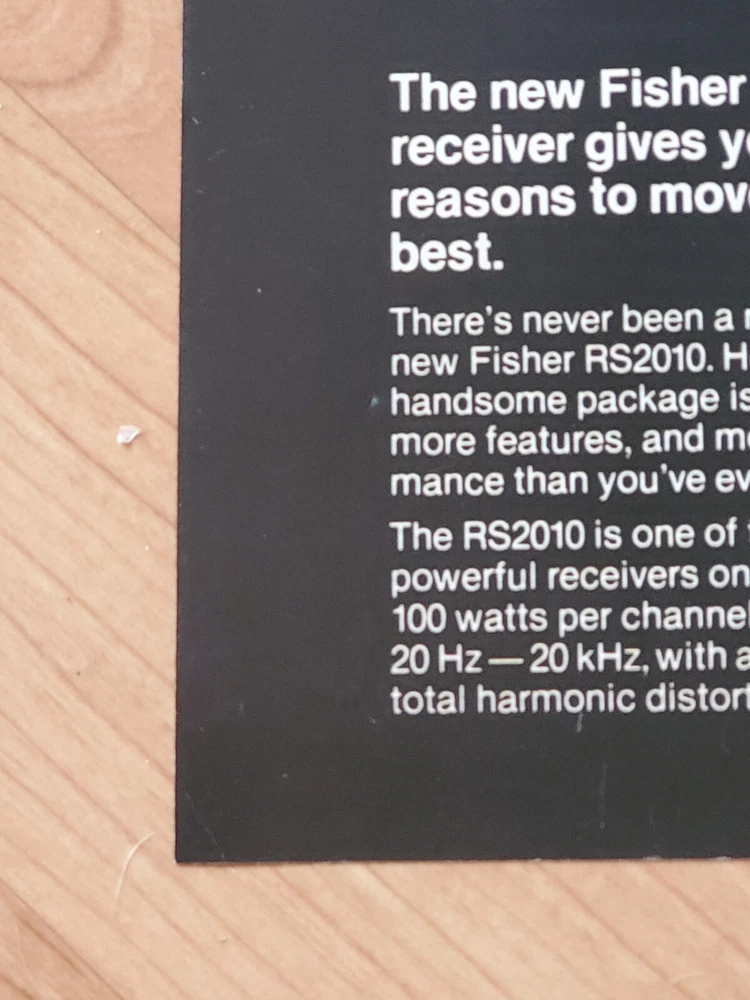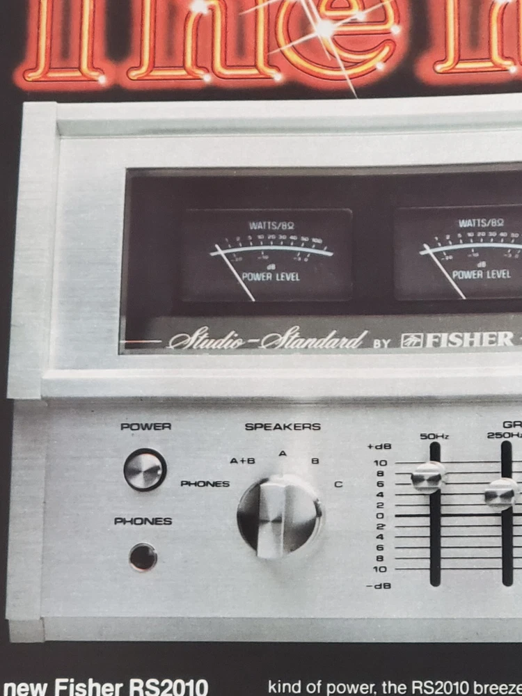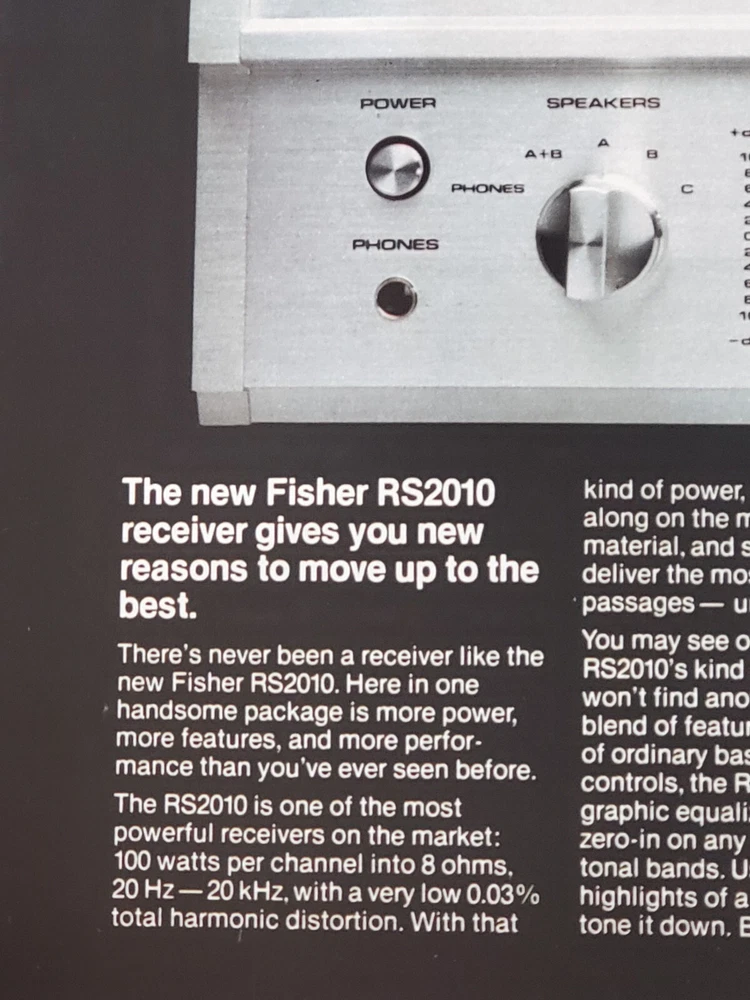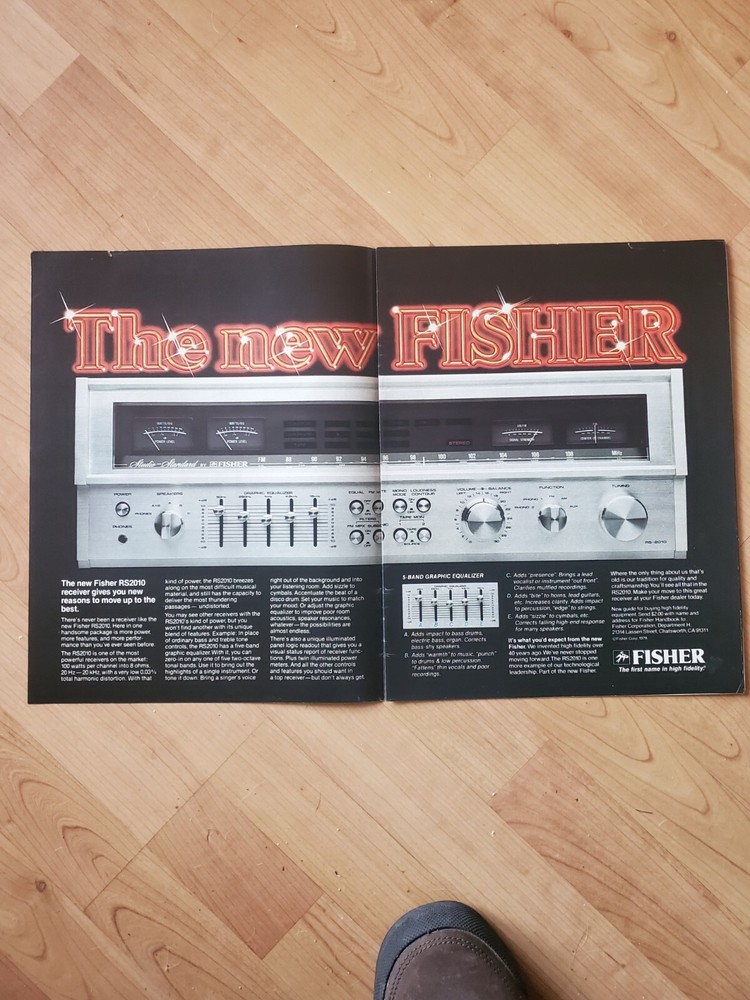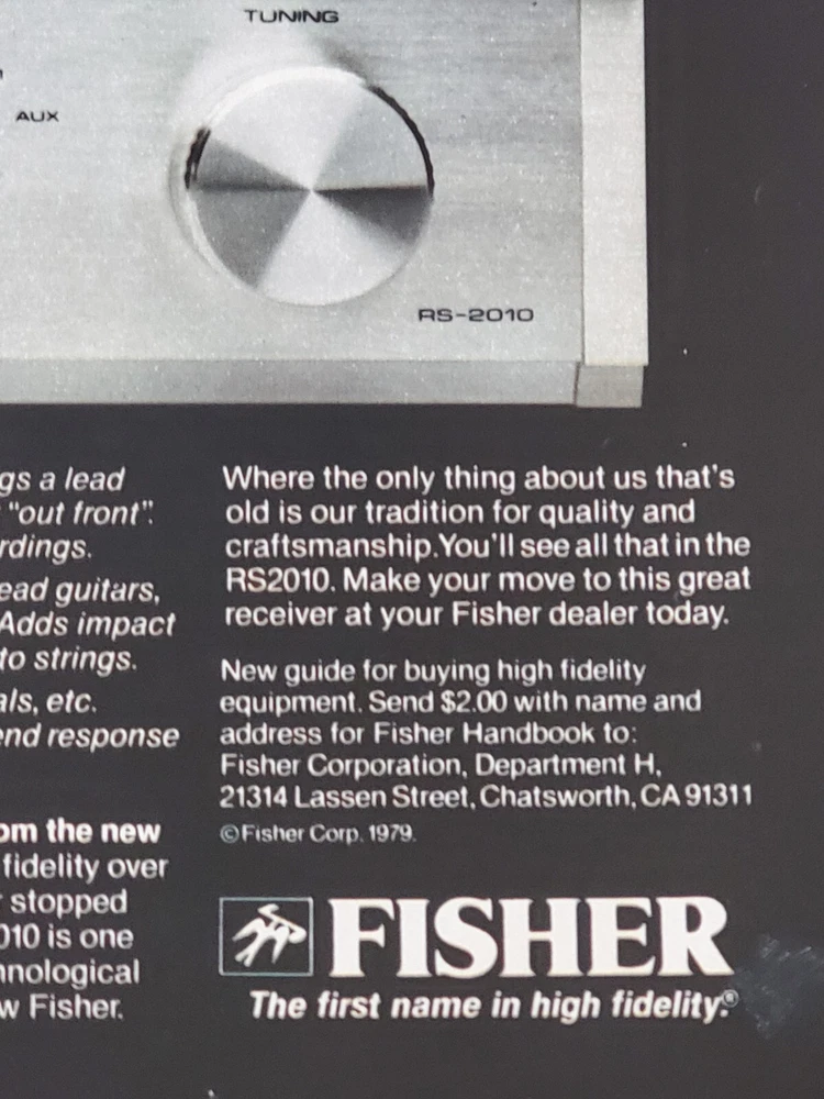 Original Advertisement from 1979 featuring Fisher RS2010 stereo receiver 2 page ad Great patina on pages from aging, adding to the authenticity. Measures 10 by 10¾ inches per page Shipped rolled for protection. I can ship flat if you prefer and specify. Great for framing. I will combine as many ads as you buy at one time into one package. All ads professional removed from their publication. Stored in acid free poly bags on boards in climate control until shipped.