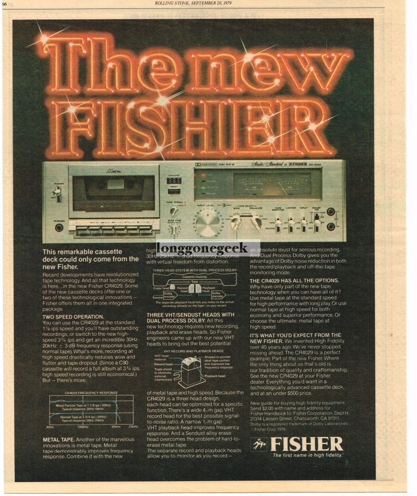 This vintage Fisher CR4029 cassette deck ad is a fantastic piece of nostalgia! The print is in excellent condition—no tears or creases—and the retro design is perfect for collectors or decor. A great way to own a slice of audio history!