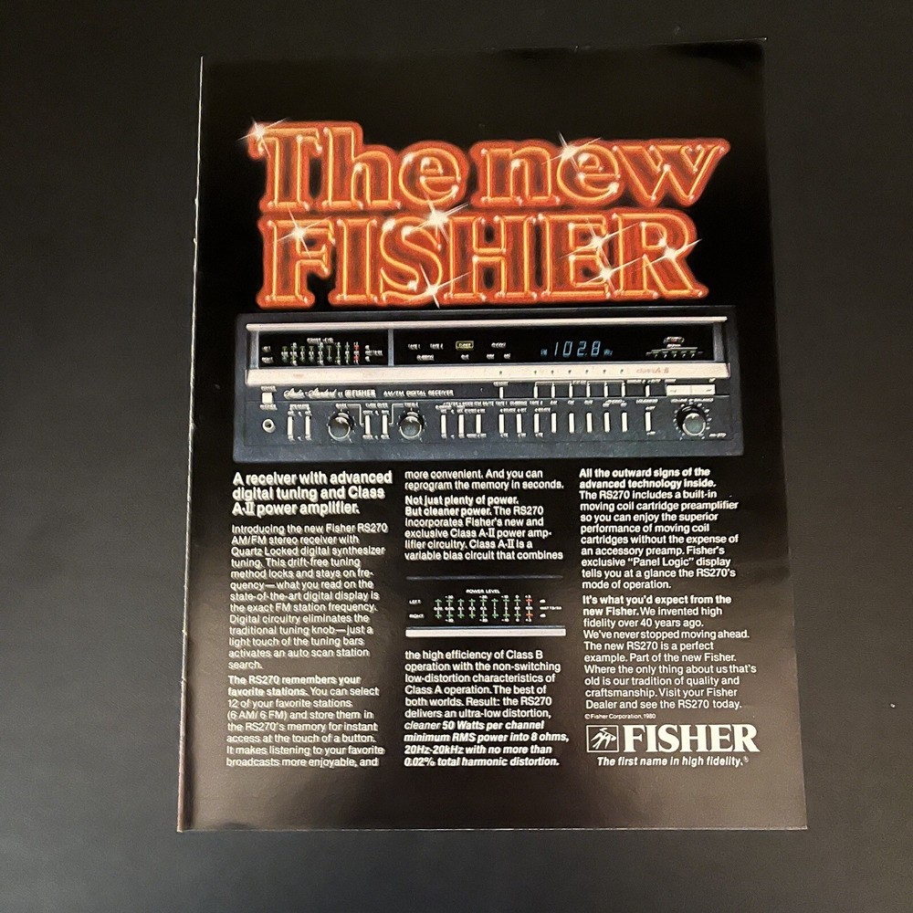1980 Fisher Print Ad Condition is Used. Shipped bagged and boarded and sent flat in a rigid cardboard envelope Shipped with USPS Ground Advantage