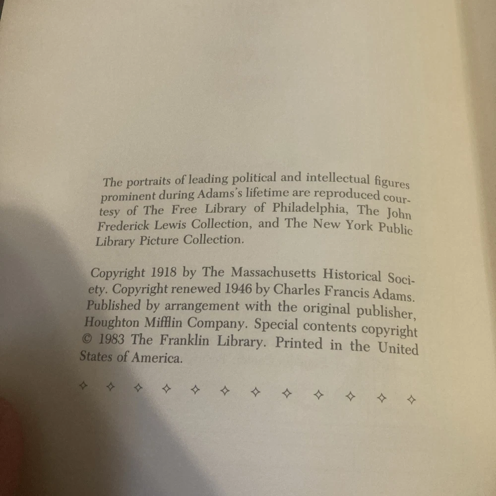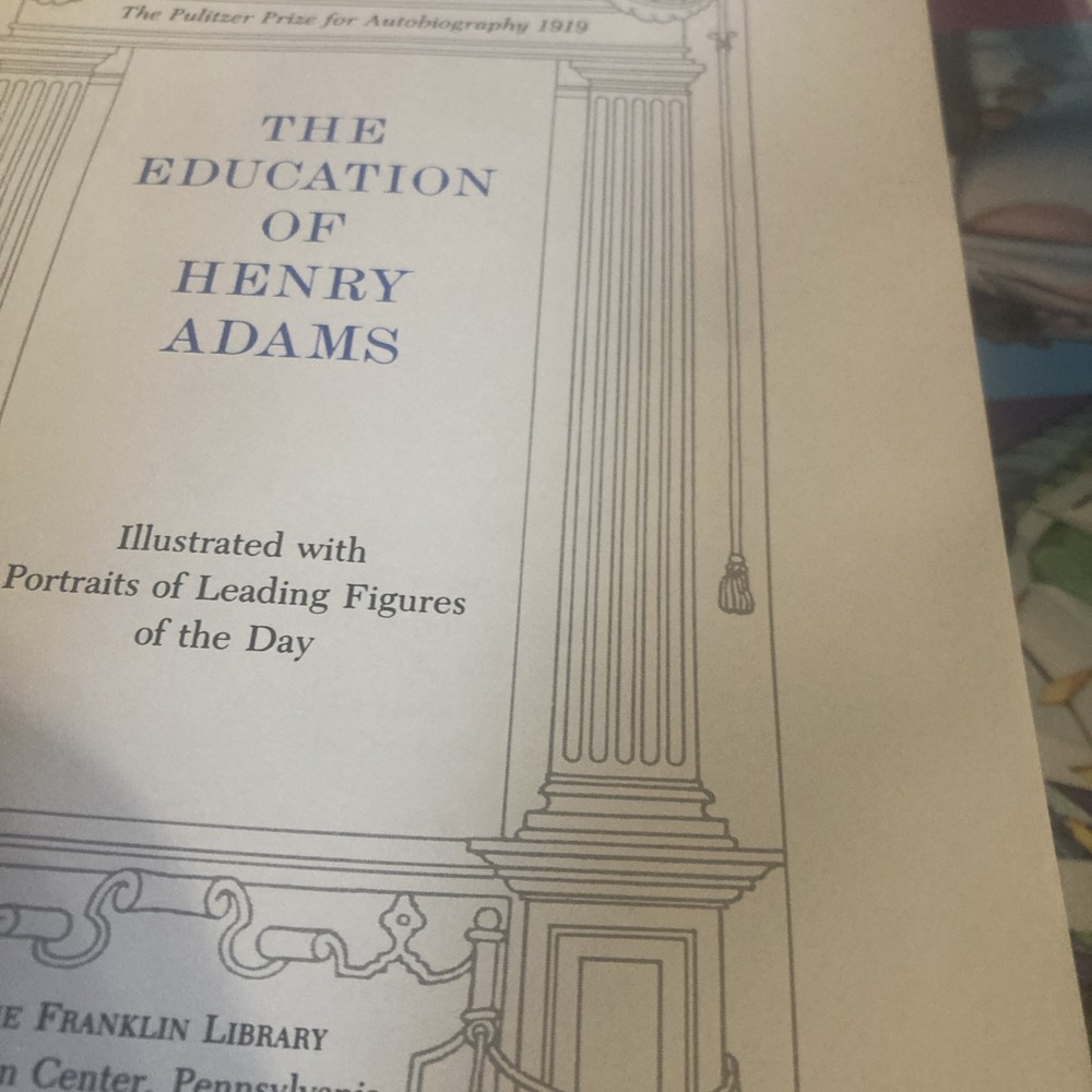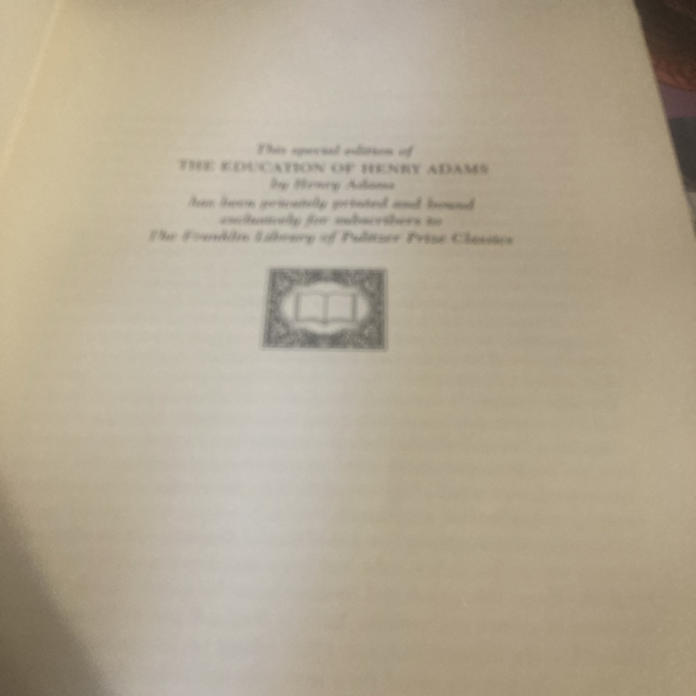 This is a 1983 Franklin Library edition of "The Education of Henry Adams" by Henry Adams. It is a luxury collector's edition, leatherbound with a bookmark. The book is a Pulitzer Prize-winning biography and falls under the topic of modern literature. It is a limited edition vintage piece published in the United States, showcasing the life of a Founding Father.