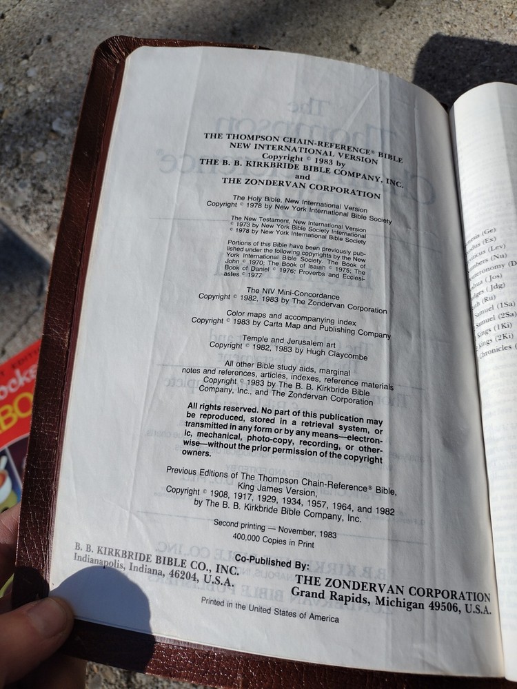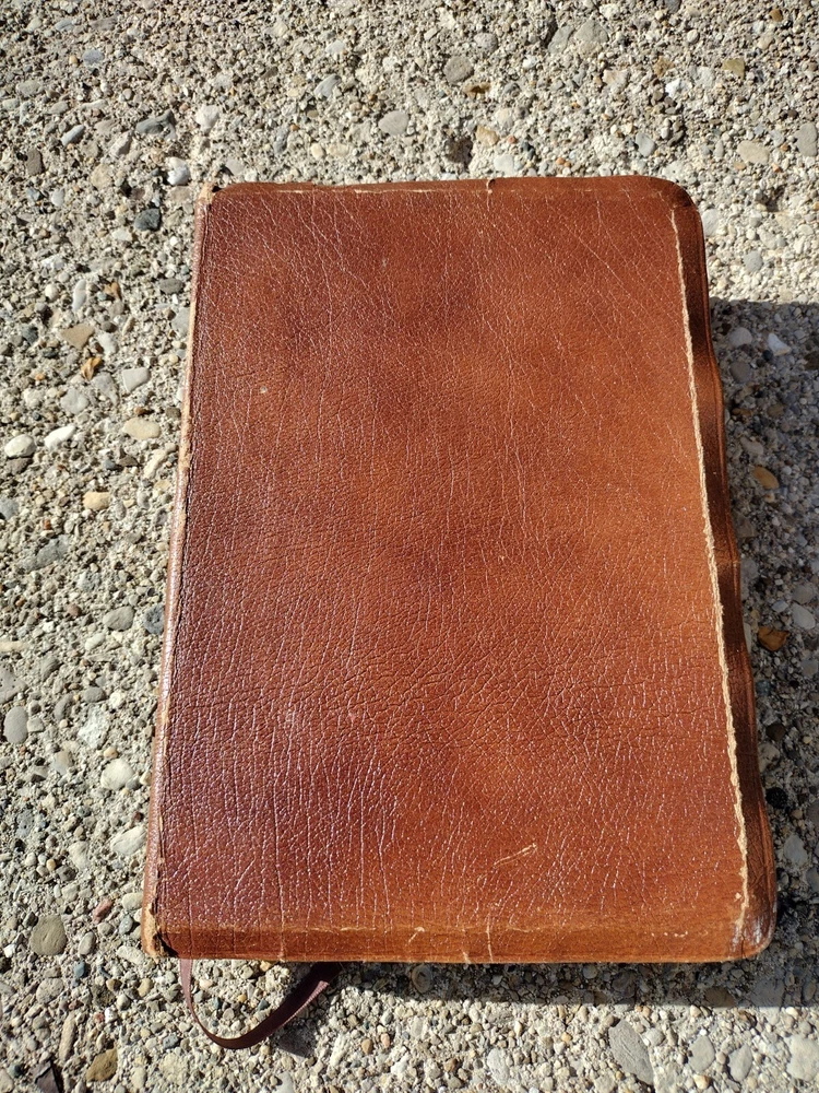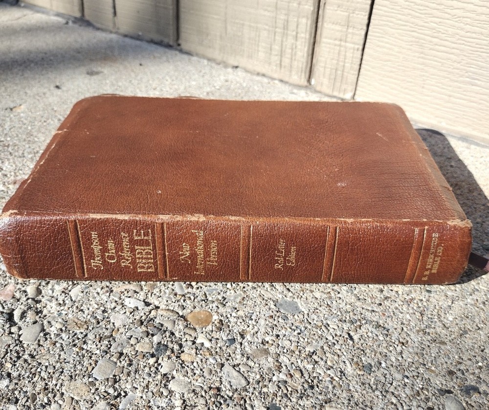 The Bible has been read and is a good, sturdy study copy. The pages are overall crisp and clean with some slight crinkles in places. The bonded leather covers are tight to the spine and have scuffing and wear in several places. It is a red letter edition published in 1983. It's definitely more of a reading copy than a collectible one, but it's a good, solid Bible!