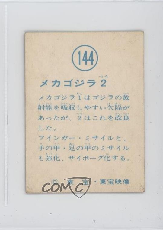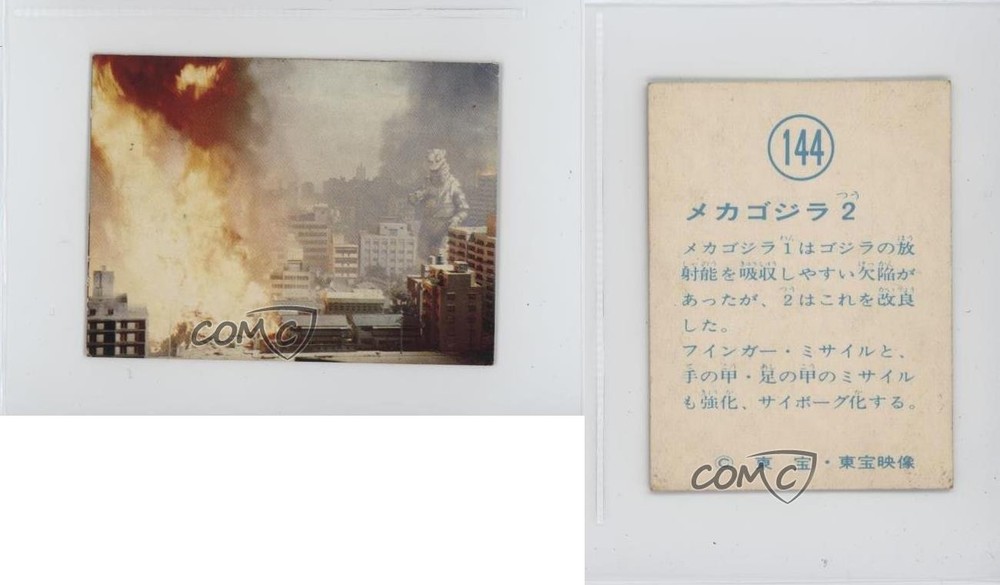 1983 Yamakatsu Godzilla Anthology - [Base] #144 Godzilla COMC Item: 248683543 - Non-Sports Card - Featuring Godzilla Search for more: 1983 Yamakatsu Godzilla Anthology Search for more: 1983 Yamakatsu Godzilla Anthology - [Base] View all of our Listings Auctions Buy It Now About Us Located in the beautiful Pacific Northwest, COMC (Check Out My Cards) is the world's largest consignment service for trading card singles. More than 10,000 people have used our consignment service to list over 50 million trading cards. Find out how we can help you consign your items on eBay by contacting us through eBay messaging. COMC -- "The Safe & Easy Way to Buy & Sell" Raw Condition for Modern Cards Unless otherwise noted, raw modern cards are listed in Near Mint-Mint condition or better. A NM-MT card appears to be Mint at first glance, but upon closer inspection, may exhibit some of the following: minor print defects (e.g. roller marks, print line, dimple), minor scratches, slight edge wear, and slight corner wear. Centering is clearly visible in the images provided and does not factor into our condition assessment. Raw Condition for Vintage Cards Unless otherwise noted, raw vintage cards are listed in Excellent condition or better. An EX card may exhibit some of the following: minor rounding of corners, surface wear, print defects, light scratches, and slight edge wear/chipping. Centering is clearly visible in the images provided and does not factor into our condition assessment. Domestic Shipping Combined shipping for multiple items is available. To receive combined shipping, please ensure all desired items are in your eBay shopping cart before proceeding to checkout. eBay limits orders to 40 items per order. We automatically combine multiple orders placed on the same day. If you place multiple orders on the same day, please contact us to request a refund of applicable shipping costs. Signature confirmation may be required on invoices over $400. All cards are protected and shipped securely. International Shipping COMC offers eBay's International Shipping (EIS) for international orders under $2,500* (see country exceptions below). All duties and import fees are paid at checkout; in the rare event that there are additional import fees upon delivery, these are borne by the buyer. EIS packages route through a shipping hub in Erlanger, KY before shipping to their final destination. Please note that EIS does not allow for combined shipments. The shipping rates are determined by eBay and cannot be adjusted. *Maximum sale price exceptions: Colombia, Kuwait ($2,000); Taiwan ($1,539); Chile, Costa Rica, Guatemala, Honduras, Trinidad and Tobago ($1,000); Antigua and Barbuda, Aruba, Belize, Dominica, Grenada, Philippines, Saint Kitts and Nevis, Saint Lucia, Montserrat, Turks and Caicos Islands ($500); Dominican Republic, El Salvador ($200). Please request a shipping quote through eBay messaging for orders that exceed the maximum sale price supported by eBay's International Shipping. You will be responsible for all duties and import fees for international orders shipped outside the EIS. All cards are protected and shipped securely. Payment COMC does not accept offers on our cards through our eBay storefront. COMC utilizes eBay’s managed payments system. If you are experiencing difficulties making a payment, please contact eBay for assistance. Return Policy Returns are only accepted on the rare occasion the item is not as described. If you are making a return, please initiate the return process through eBay so a mailing label can be provided for you. Prior to listing, our expert team carefully assessed this item to represent it accurately. Please review the description and high-definition images prior to purchasing to ensure this item meets your satisfaction. We welcome you to contact us if you have further questions about this item. Trust and Integrity COMC carefully assesses each item consigned to us to prevent fraudulent items from entering the marketplace. If you believe an item offered on COMC may be fraudulent, please contact us with details so we can investigate the issue. Items we determine are outside our supported items policy may be removed. Last Modified: 6/13/2025 12:08:06 PM PDT