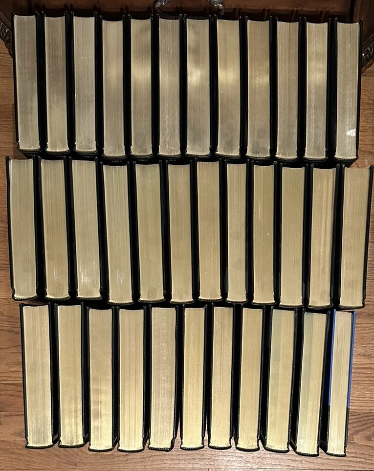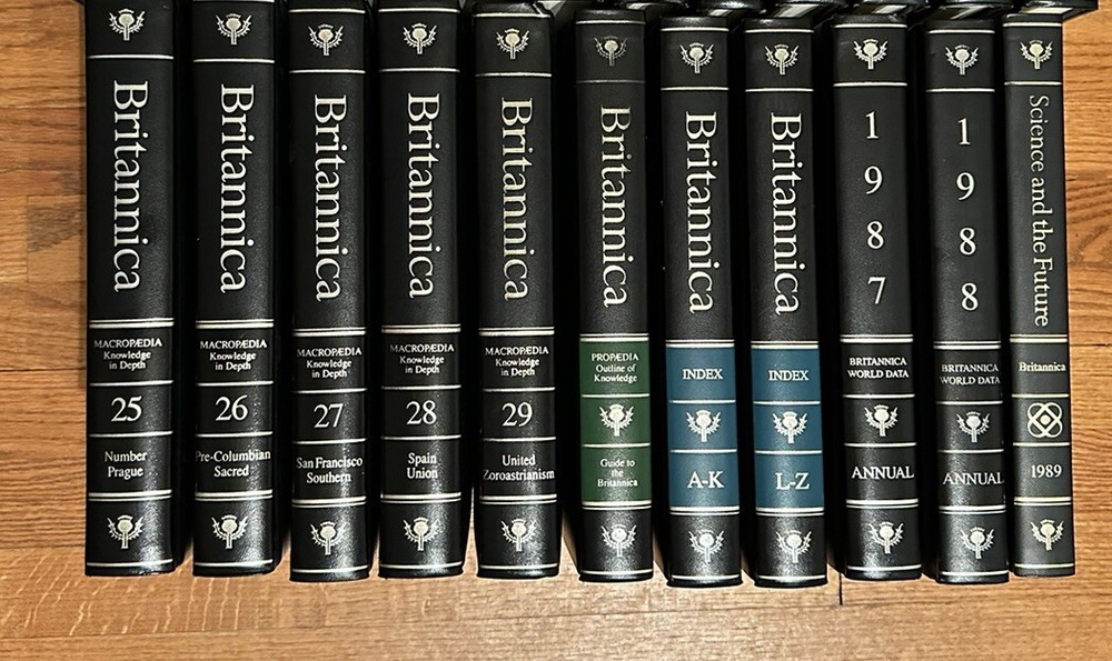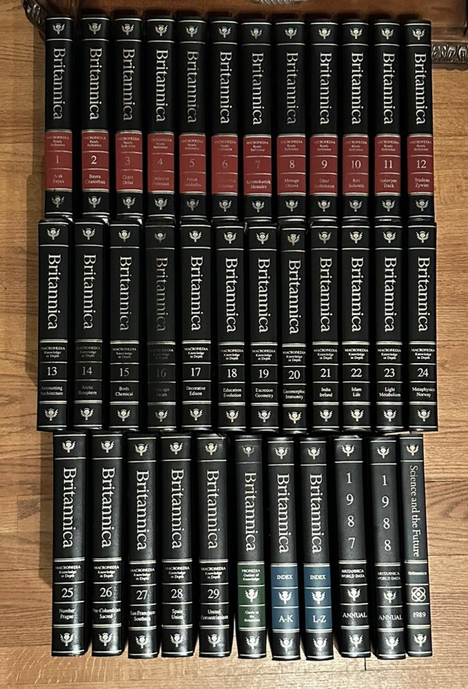 This 35-volume complete set of the 1987 Encyclopedia Britannica is a must-have for any collector or reference enthusiast. The padded leather binding adds an extra touch of luxury to this North American publication, which features special attributes such as language in English and a publisher of Encyclopædia Britannica, Inc. The topic of the encyclopedia is broad and covers various subjects, making it a great addition to any book collection. The unit quantity is 35, and it was printed in the United States in 1987. This antique reference book is perfect for anyone looking to expand their knowledge or simply admire the beauty of leather-bound books.
