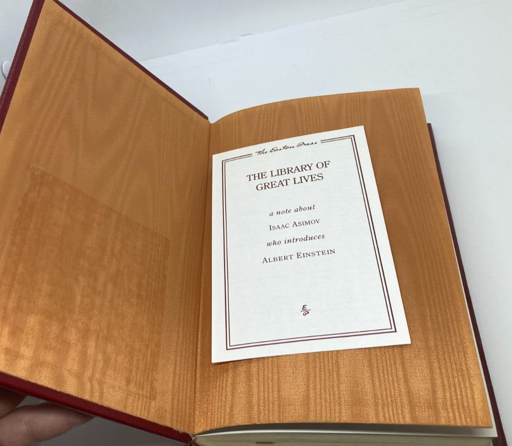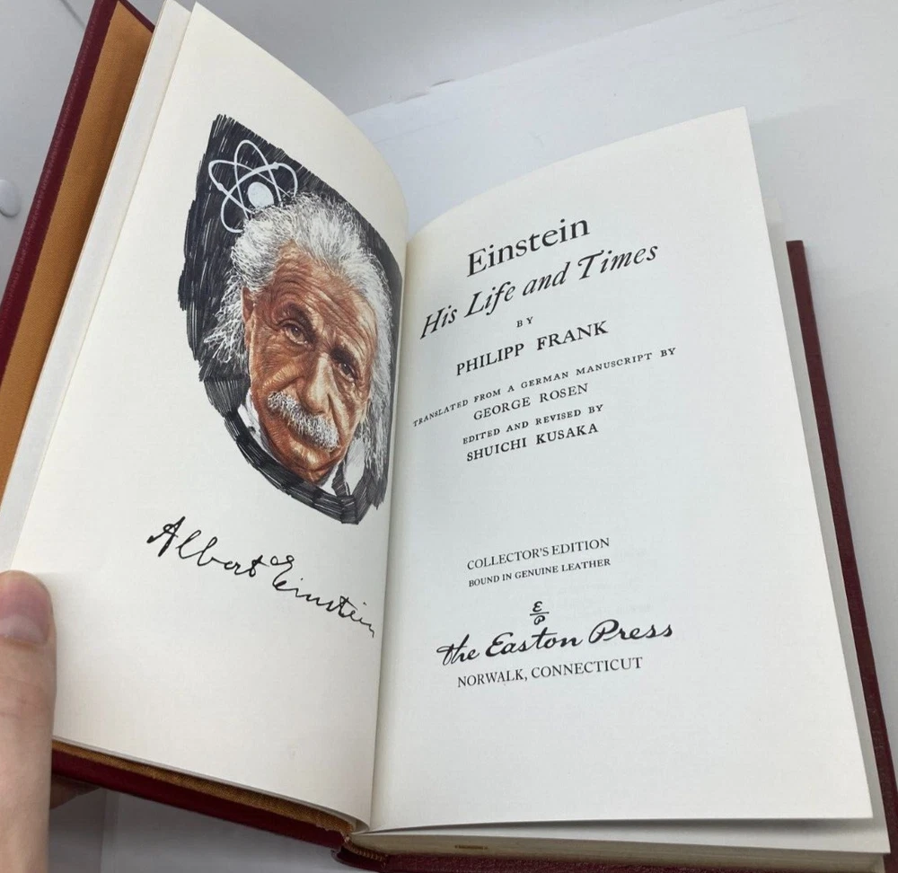 Up for sale is a 1988 Easton Press copy of "EINSTEIN: HIS LIFE AND TIMES" by Philipp Frank. Much has been written about Albert Einstein, technical and biographical, but very little remains as valuable as this unique hybrid of a book written by Einstein’s colleague and contemporary. Both rich in personal insights and grounded in a deep knowledge of twentieth-century science, Phillip Frank's biography anchors the reader with a lucid overview of physics and draws an intimate portrait of the Nobel Prize–winner. This book is in very good condition. Boards are straight and clean with four good corners. Light shelf wear to the edges, corners, and top/bottom of the spine panel. Light shelf wear to the front/rear board panels as well as along the spine panel. Internally the book is in excellent condition. On the front paste down there is a discoloration where maybe a bookplate was removed. Spine and pages are extremely tight. No marks, book plates, tears, or writing anywhere in this book. Please review all photos for your best idea of the condition. Shipping on this item will be $6.50. Thank you and good luck.