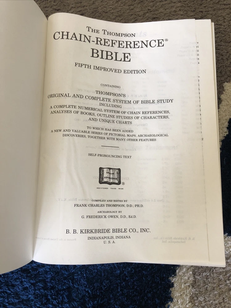 1988 Thompson Chain Reference Bible KJV Kirkbride Bible Red Letter Ed. Hardcover in good condition. No writing on the inside. See pics! Please let me know if you have any questions!