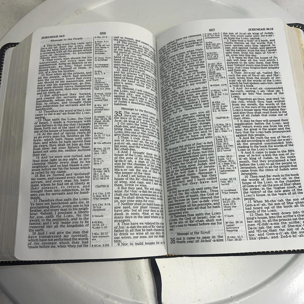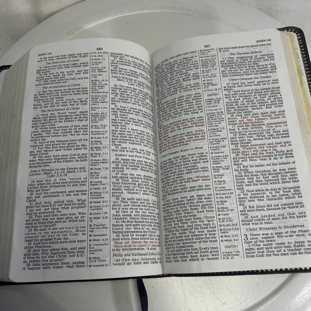 This KJV Bible is a beautiful vintage find! The red-letter text and leather binding give it a classic feel, and the indexed pages make navigation easy. While it shows some wear, that only adds to its character—perfect for those who appreciate a well-loved Bible with history. The photos accurately show its condition, and the seller is responsive to questions. A great choice for collectors or daily use!