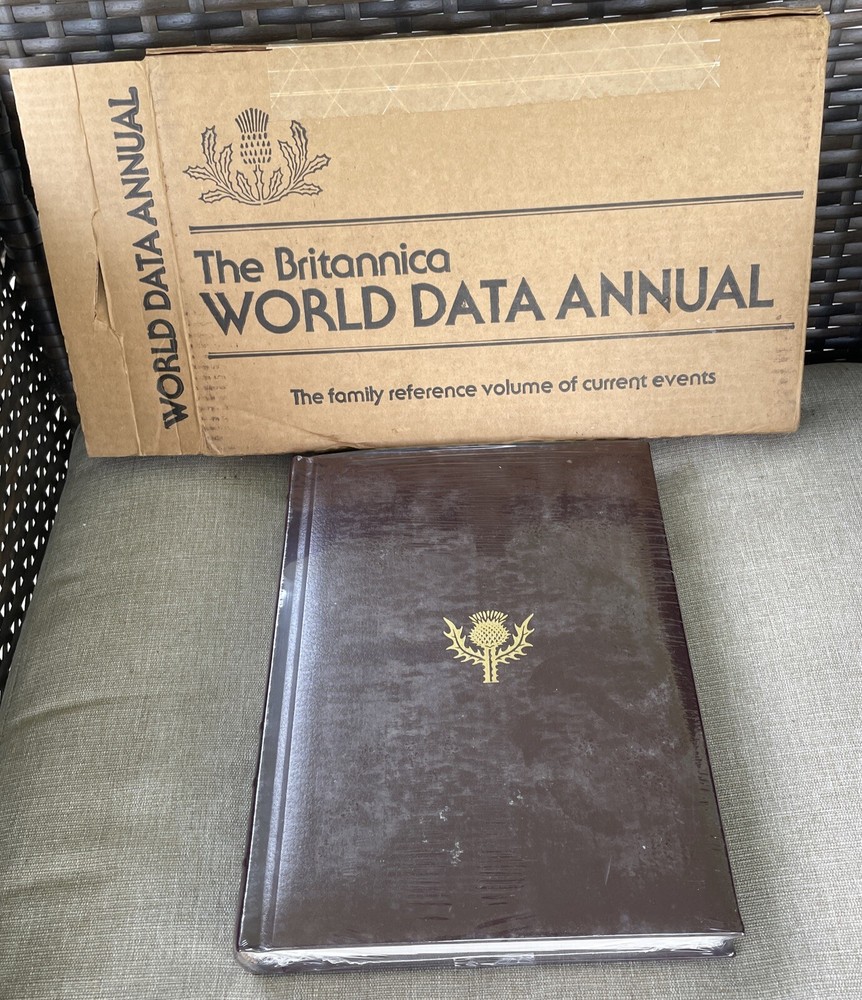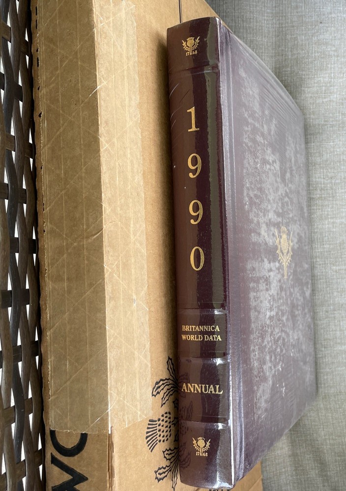 1990 Encyclopedia Britannica Annual World Data Book of the Year Leather Padded. New/Sealed/Original box!...