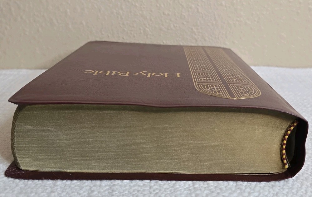 1990 Regency King James Burgundy Holy Bible Giant Print Red Letter KJV very good condition. Large print with Jesus' words in red.