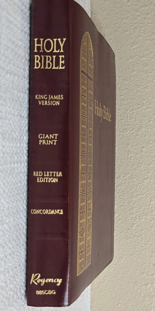 1990 Regency King James Burgundy Holy Bible Giant Print Red Letter KJV very good condition. Large print with Jesus' words in red....