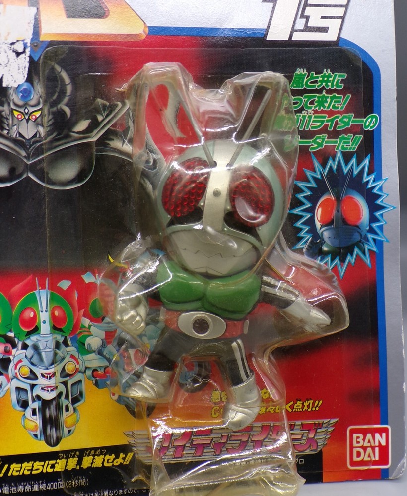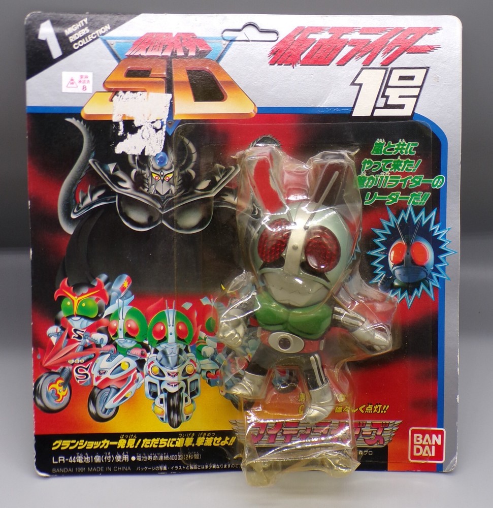 Vintage 1991 Japanese Bandai Kamen Rider SD action figure MINT and SEALED on card! Based on the iconic first Kamen Rider, this adorable figure is part of the "Mighty Rider" series. The backing card shows wear, with dings on the corners, as well as patches of veining and a large patch of paper loss on the top right of the card. The bubble shows some wear, with some age related discoloration, as well as denting. Overall a fun addition to any Masked Rider collection! PLEASE SEE PHOTOS FOR DETAILS. Check our other auctions for similar items & to save on shipping. All items are sold as-is and we do not accept returns, so please ask any questions you may have before bidding. ZERO FEEDBACK or other questionable bidders, please email to obtain permission to participate in our auctions BEFORE bidding. Please feel free to stop by our RETAIL LOCATION to view items in person.