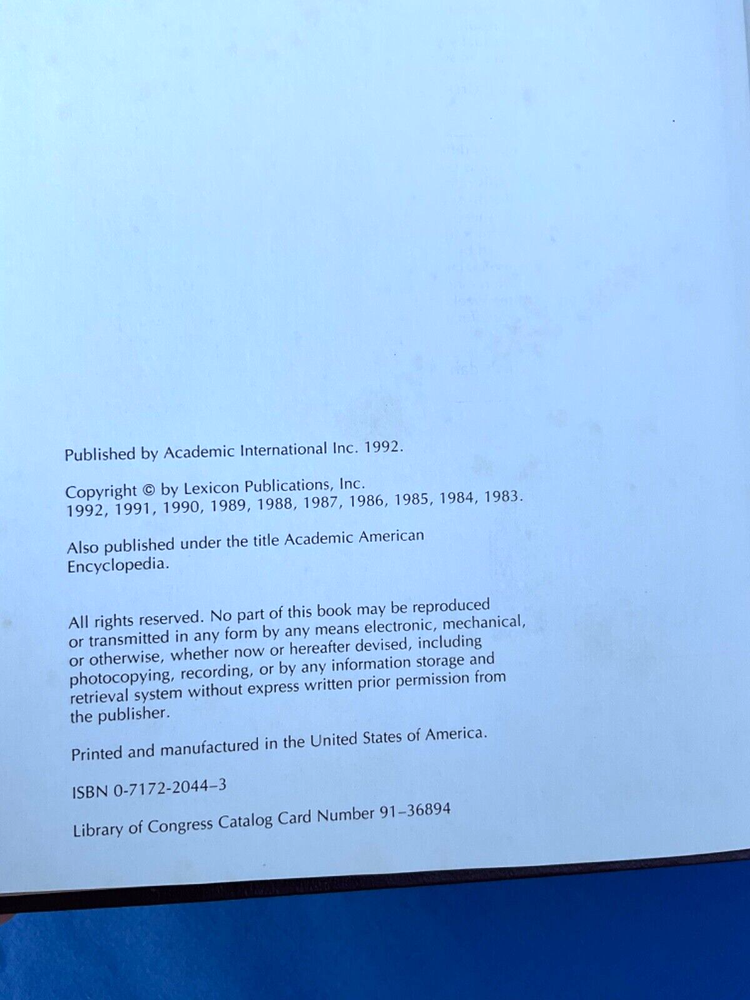 Academic International Encyclopedia Q-R 16 1992 Hardcover leather, no dust jacket Very good condition, no markings, no missing page, like new Copyright by Lexicon Publications, Inc. 1992,1991, 1990, 1989, 1987, 1986, 1985,1984,1983 ISBN 0-7172-2044-3 Printed in United States of America. 380 pages Please review all photos for better item description. Complete your collections today. Please have a look to my other listings. Thank you for visiting. WWW.4THEGIFTS.COM
