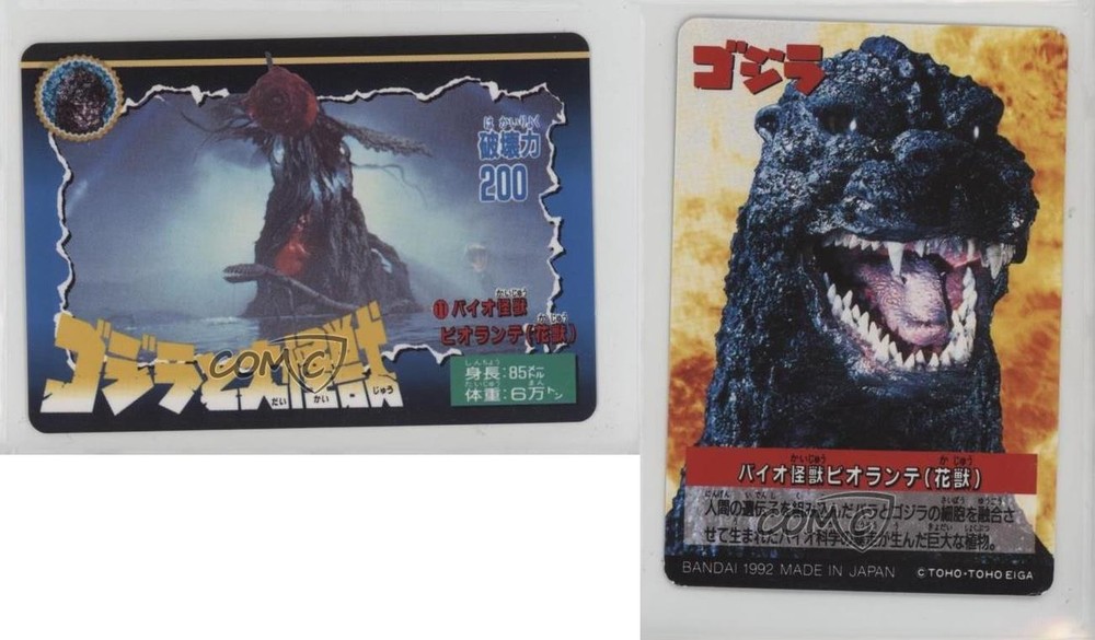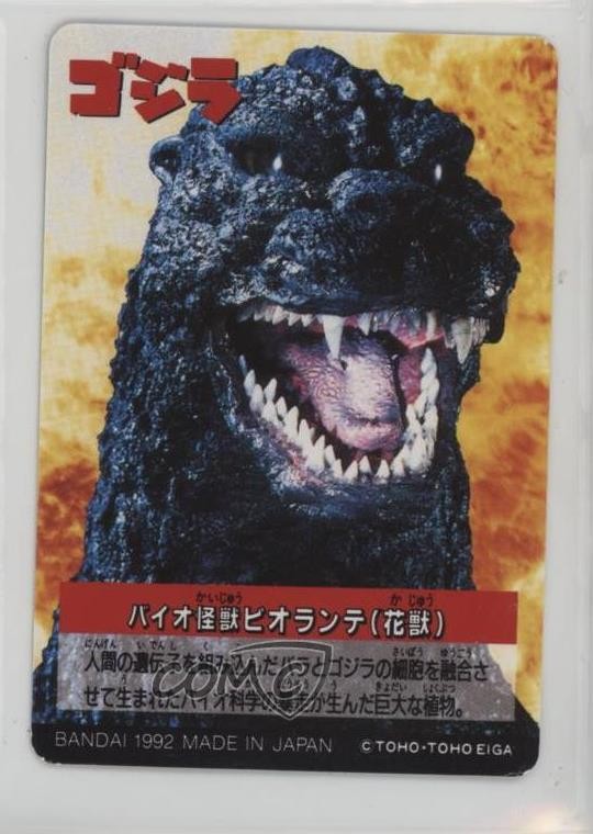 This Bandai Godzilla card featuring Biollante is a must-have for any kaiju collector! The artwork is stunning, capturing the monstrous plant creature in vivid detail. A fantastic addition to any vintage Godzilla set—highly recommended for fans of the franchise.