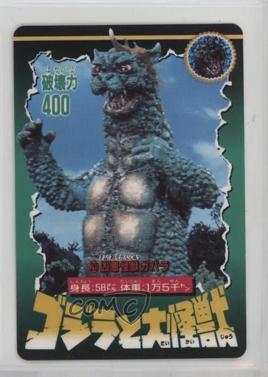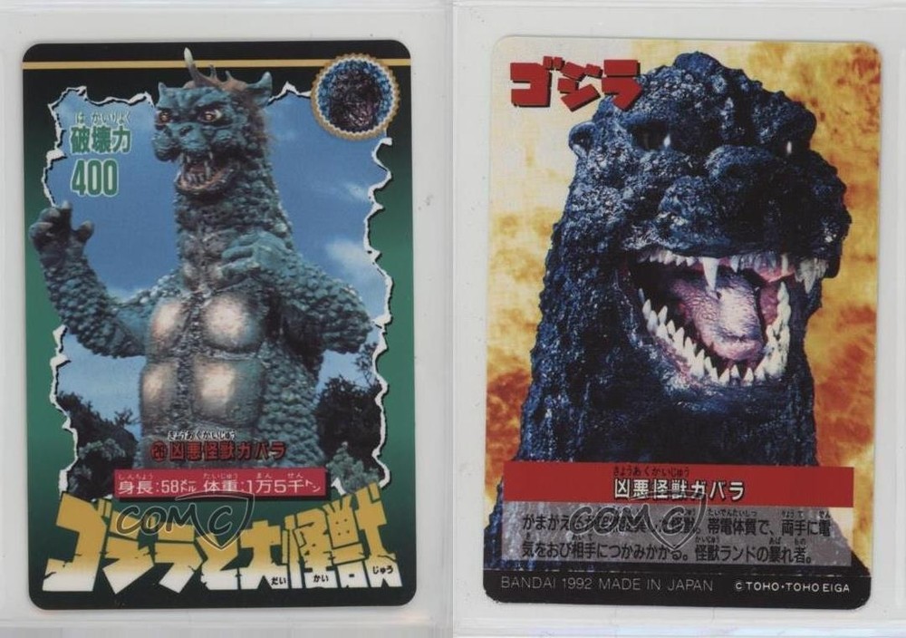 1992 Bandai Godzilla and the Great Kaiju - [Base] #26 Gabara COMC Item: 257726869 - Non-Sports Card - Featuring Gabara Search for more: 1992 Bandai Godzilla and the Great Kaiju Search for more: 1992 Bandai Godzilla and the Great Kaiju - [Base] View all of our Listings Auctions Buy It Now About Us Located in the beautiful Pacific Northwest, COMC (Check Out My Cards) is the world's largest consignment service for trading card singles. More than 10,000 people have used our consignment service to list over 50 million trading cards. Find out how we can help you consign your items on eBay by contacting us through eBay messaging. COMC -- "The Safe & Easy Way to Buy & Sell" Raw Condition for Modern Cards Unless otherwise noted, raw modern cards are listed in Near Mint-Mint condition or better. A NM-MT card appears to be Mint at first glance, but upon closer inspection, may exhibit some of the following: minor print defects (e.g. roller marks, print line, dimple), minor scratches, slight edge wear, and slight corner wear. Centering is clearly visible in the images provided and does not factor into our condition assessment. Raw Condition for Vintage Cards Unless otherwise noted, raw vintage cards are listed in Excellent condition or better. An EX card may exhibit some of the following: minor rounding of corners, surface wear, print defects, light scratches, and slight edge wear/chipping. Centering is clearly visible in the images provided and does not factor into our condition assessment. Domestic Shipping Combined shipping for multiple items is available. To receive combined shipping, please ensure all desired items are in your eBay shopping cart before proceeding to checkout. eBay limits orders to 40 items per order. We automatically combine multiple orders placed on the same day. If you place multiple orders on the same day, please contact us to request a refund of applicable shipping costs. Signature confirmation may be required on invoices over $400. All cards are protected and shipped securely. International Shipping COMC offers eBay's International Shipping (EIS) for international orders under $2,500* (see country exceptions below). All duties and import fees are paid at checkout; in the rare event that there are additional import fees upon delivery, these are borne by the buyer. EIS packages route through a shipping hub in Erlanger, KY before shipping to their final destination. Please note that EIS does not allow for combined shipments. The shipping rates are determined by eBay and cannot be adjusted. *Maximum sale price exceptions: Colombia, Kuwait ($2,000); Taiwan ($1,539); Chile, Costa Rica, Guatemala, Honduras, Trinidad and Tobago ($1,000); Antigua and Barbuda, Aruba, Belize, Dominica, Grenada, Philippines, Saint Kitts and Nevis, Saint Lucia, Montserrat, Turks and Caicos Islands ($500); Dominican Republic, El Salvador ($200). Please request a shipping quote through eBay messaging for orders that exceed the maximum sale price supported by eBay's International Shipping. You will be responsible for all duties and import fees for international orders shipped outside the EIS. All cards are protected and shipped securely. Payment COMC does not accept offers on our cards through our eBay storefront. COMC utilizes eBay’s managed payments system. If you are experiencing difficulties making a payment, please contact eBay for assistance. Return Policy Returns are only accepted on the rare occasion the item is not as described. If you are making a return, please initiate the return process through eBay so a mailing label can be provided for you. Prior to listing, our expert team carefully assessed this item to represent it accurately. Please review the description and high-definition images prior to purchasing to ensure this item meets your satisfaction. We welcome you to contact us if you have further questions about this item. Trust and Integrity COMC carefully assesses each item consigned to us to prevent fraudulent items from entering the marketplace. If you believe an item offered on COMC may be fraudulent, please contact us with details so we can investigate the issue. Items we determine are outside our supported items policy may be removed. Last Modified: 5/21/2025 7:01:32 PM PDT