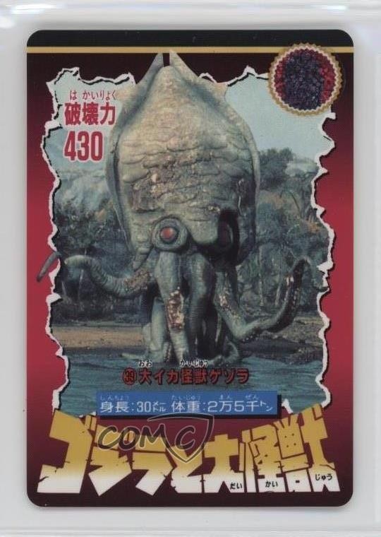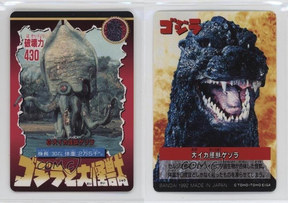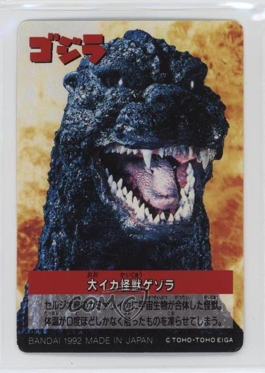 1992 Bandai Godzilla and the Great Kaiju - [Base] #39 Gezora COMC Item: 218725194 - Non-Sports Card - Featuring Gezora Search for more: 1992 Bandai Godzilla and the Great Kaiju Search for more: 1992 Bandai Godzilla and the Great Kaiju - [Base] View all of our Listings Auctions Buy It Now About Us Located in the beautiful Pacific Northwest, COMC (Check Out My Cards) is the world's largest consignment service for trading card singles. More than 10,000 people have used our consignment service to list over 50 million trading cards. Find out how we can help you consign your items on eBay by contacting us through eBay messaging. COMC -- "The Safe & Easy Way to Buy & Sell" Raw Condition for Modern Cards Unless otherwise noted, raw modern cards are listed in Near Mint-Mint condition or better. A NM-MT card appears to be Mint at first glance, but upon closer inspection, may exhibit some of the following: minor print defects (e.g. roller marks, print line, dimple), minor scratches, slight edge wear, and slight corner wear. Centering is clearly visible in the images provided and does not factor into our condition assessment. Raw Condition for Vintage Cards Unless otherwise noted, raw vintage cards are listed in Excellent condition or better. An EX card may exhibit some of the following: minor rounding of corners, surface wear, print defects, light scratches, and slight edge wear/chipping. Centering is clearly visible in the images provided and does not factor into our condition assessment. Domestic Shipping Combined shipping for multiple items is available. To receive combined shipping, please ensure all desired items are in your eBay shopping cart before proceeding to checkout. eBay limits orders to 40 items per order. We automatically combine multiple orders placed on the same day. If you place multiple orders on the same day, please contact us to request a refund of applicable shipping costs. Signature confirmation may be required on invoices over $400. All cards are protected and shipped securely. International Shipping COMC offers eBay's International Shipping (EIS) for international orders under $2,500* (see country exceptions below). All duties and import fees are paid at checkout; in the rare event that there are additional import fees upon delivery, these are borne by the buyer. EIS packages route through a shipping hub in Erlanger, KY before shipping to their final destination. Please note that EIS does not allow for combined shipments. The shipping rates are determined by eBay and cannot be adjusted. *Maximum sale price exceptions: Colombia, Kuwait ($2,000); Taiwan ($1,539); Chile, Costa Rica, Guatemala, Honduras, Trinidad and Tobago ($1,000); Antigua and Barbuda, Aruba, Belize, Dominica, Grenada, Philippines, Saint Kitts and Nevis, Saint Lucia, Montserrat, Turks and Caicos Islands ($500); Dominican Republic, El Salvador ($200). Please request a shipping quote through eBay messaging for orders that exceed the maximum sale price supported by eBay's International Shipping. You will be responsible for all duties and import fees for international orders shipped outside the EIS. All cards are protected and shipped securely. Payment COMC does not accept offers on our cards through our eBay storefront. COMC utilizes eBay’s managed payments system. If you are experiencing difficulties making a payment, please contact eBay for assistance. Return Policy Returns are only accepted on the rare occasion the item is not as described. If you are making a return, please initiate the return process through eBay so a mailing label can be provided for you. Prior to listing, our expert team carefully assessed this item to represent it accurately. Please review the description and high-definition images prior to purchasing to ensure this item meets your satisfaction. We welcome you to contact us if you have further questions about this item. Trust and Integrity COMC carefully assesses each item consigned to us to prevent fraudulent items from entering the marketplace. If you believe an item offered on COMC may be fraudulent, please contact us with details so we can investigate the issue. Items we determine are outside our supported items policy may be removed. Last Modified: 5/13/2025 1:21:53 AM PDT