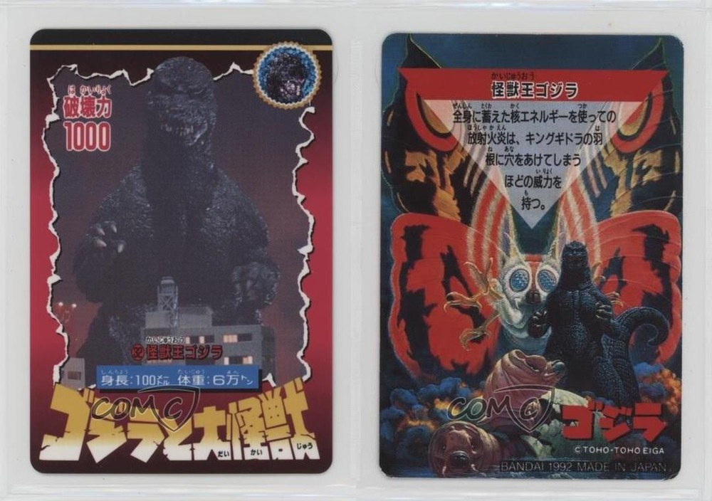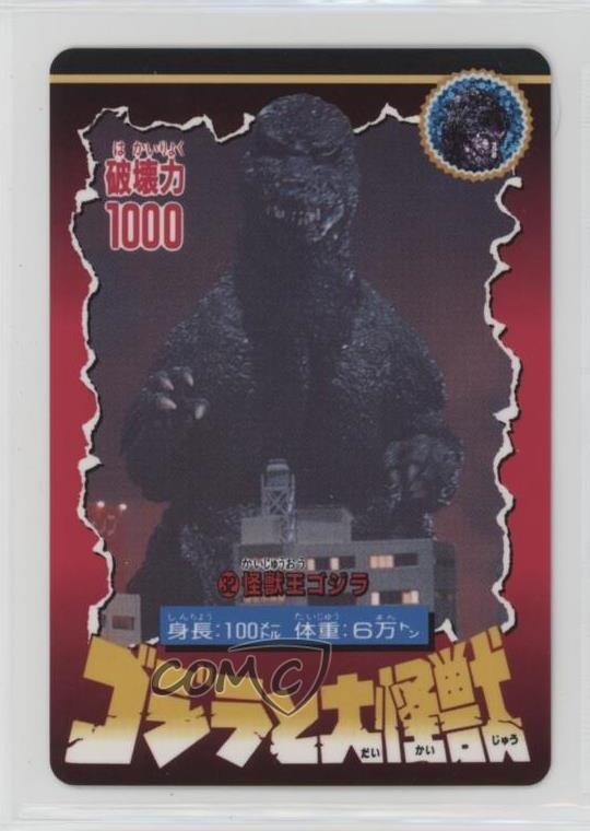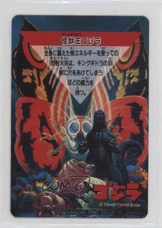 1992 Bandai Godzilla and the Great Kaiju - [Base] #32 Godzilla COMC Item: 257717074 - Non-Sports Card - Featuring Godzilla Search for more: 1992 Bandai Godzilla and the Great Kaiju Search for more: 1992 Bandai Godzilla and the Great Kaiju - [Base] View all of our Listings Auctions Buy It Now About Us Located in the beautiful Pacific Northwest, COMC (Check Out My Cards) is the world's largest consignment service for trading card singles. More than 10,000 people have used our consignment service to list over 50 million trading cards. Find out how we can help you consign your items on eBay by contacting us through eBay messaging. COMC -- "The Safe & Easy Way to Buy & Sell" Raw Condition for Modern Cards Unless otherwise noted, raw modern cards are listed in Near Mint-Mint condition or better. A NM-MT card appears to be Mint at first glance, but upon closer inspection, may exhibit some of the following: minor print defects (e.g. roller marks, print line, dimple), minor scratches, slight edge wear, and slight corner wear. Centering is clearly visible in the images provided and does not factor into our condition assessment. Raw Condition for Vintage Cards Unless otherwise noted, raw vintage cards are listed in Excellent condition or better. An EX card may exhibit some of the following: minor rounding of corners, surface wear, print defects, light scratches, and slight edge wear/chipping. Centering is clearly visible in the images provided and does not factor into our condition assessment. Domestic Shipping Combined shipping for multiple items is available. To receive combined shipping, please ensure all desired items are in your eBay shopping cart before proceeding to checkout. eBay limits orders to 40 items per order. We automatically combine multiple orders placed on the same day. If you place multiple orders on the same day, please contact us to request a refund of applicable shipping costs. Signature confirmation may be required on invoices over $400. All cards are protected and shipped securely. International Shipping COMC offers eBay's International Shipping (EIS) for international orders under $2,500* (see country exceptions below). All duties and import fees are paid at checkout; in the rare event that there are additional import fees upon delivery, these are borne by the buyer. EIS packages route through a shipping hub in Erlanger, KY before shipping to their final destination. Please note that EIS does not allow for combined shipments. The shipping rates are determined by eBay and cannot be adjusted. *Maximum sale price exceptions: Colombia, Kuwait ($2,000); Taiwan ($1,539); Chile, Costa Rica, Guatemala, Honduras, Trinidad and Tobago ($1,000); Antigua and Barbuda, Aruba, Belize, Dominica, Grenada, Philippines, Saint Kitts and Nevis, Saint Lucia, Montserrat, Turks and Caicos Islands ($500); Dominican Republic, El Salvador ($200). Please request a shipping quote through eBay messaging for orders that exceed the maximum sale price supported by eBay's International Shipping. You will be responsible for all duties and import fees for international orders shipped outside the EIS. All cards are protected and shipped securely. Payment COMC does not accept offers on our cards through our eBay storefront. COMC utilizes eBay’s managed payments system. If you are experiencing difficulties making a payment, please contact eBay for assistance. Return Policy Returns are only accepted on the rare occasion the item is not as described. If you are making a return, please initiate the return process through eBay so a mailing label can be provided for you. Prior to listing, our expert team carefully assessed this item to represent it accurately. Please review the description and high-definition images prior to purchasing to ensure this item meets your satisfaction. We welcome you to contact us if you have further questions about this item. Trust and Integrity COMC carefully assesses each item consigned to us to prevent fraudulent items from entering the marketplace. If you believe an item offered on COMC may be fraudulent, please contact us with details so we can investigate the issue. Items we determine are outside our supported items policy may be removed. Last Modified: 5/21/2025 6:42:19 PM PDT