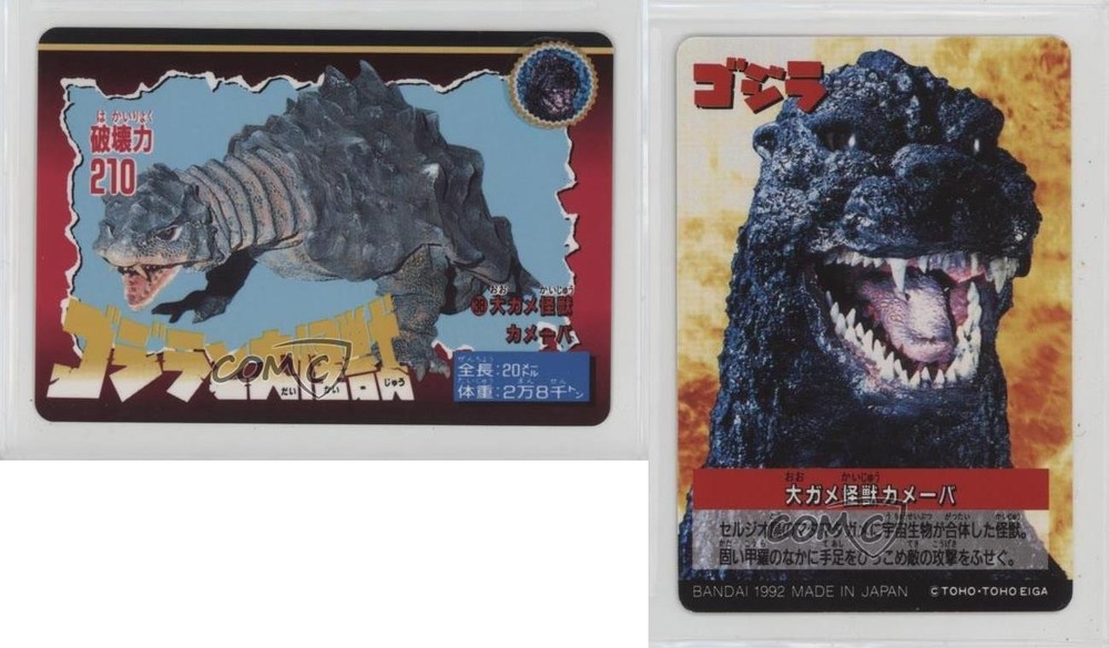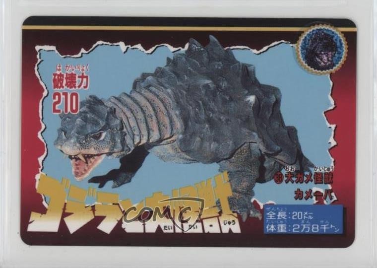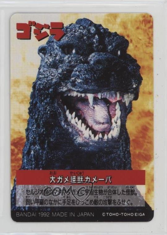 This Bandai Godzilla card featuring Kamoebas is a must-have for kaiju collectors! The artwork is vibrant and nostalgic, perfectly capturing the classic monster movie charm. The card arrived in great condition, and the seller was super reliable. A fantastic addition to any Godzilla or vintage toy card collection—highly recommend!
