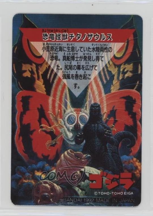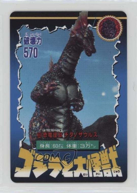 This Bandai Godzilla card featuring Titanosaurus is a must-have for kaiju collectors! The artwork is vibrant, capturing the monster’s fierce energy, and the card condition is excellent. A nostalgic piece from the '90s that stands out in any collection—highly recommended for Godzilla fans!