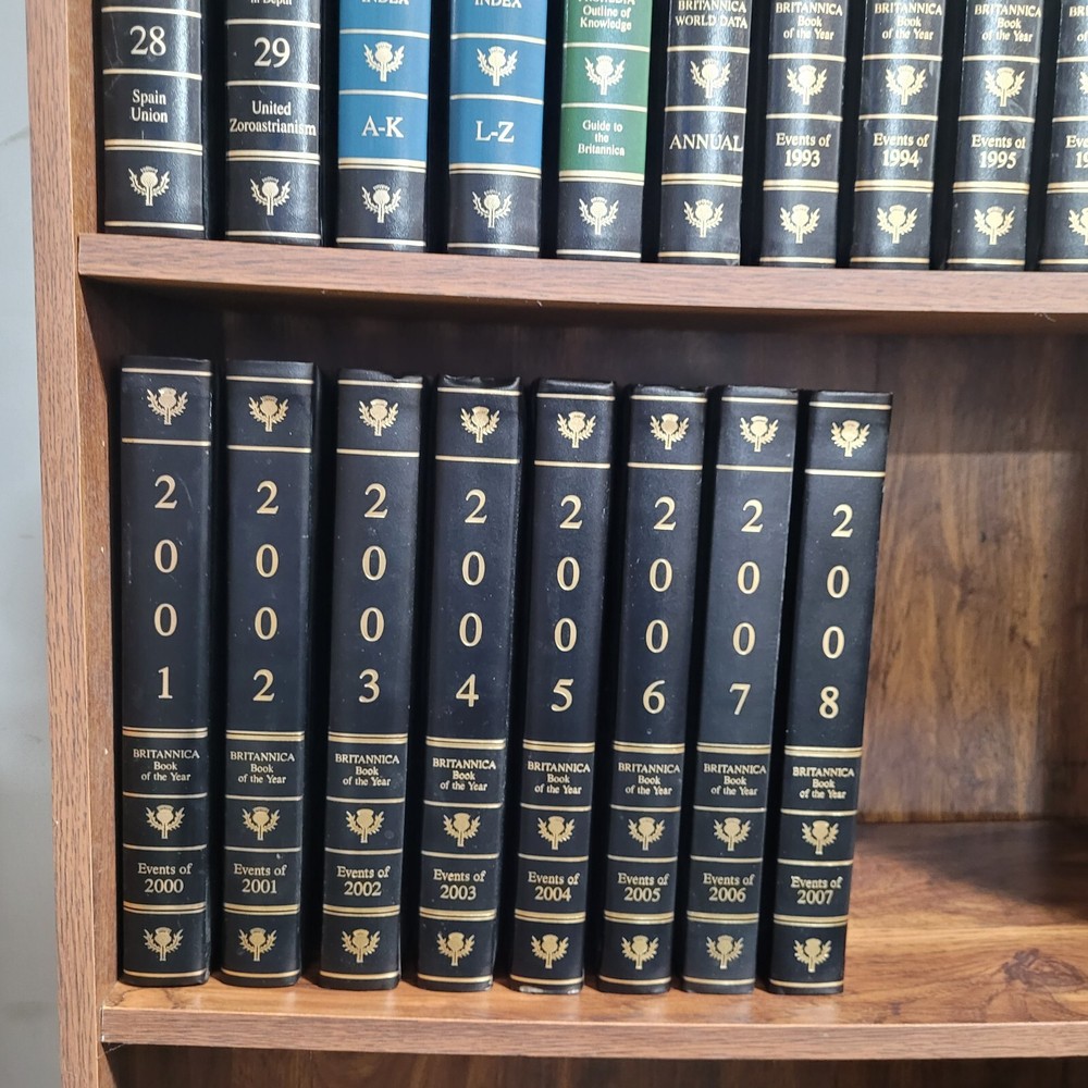 1992 Encyclopedia Britannica Full Set with Book of the Year and index Vol 1-29, Index A-K, Index L-Z, Guide to the Britannica, book of the year 1993- 2008 LIKE NEW CONDITION stiff binding, possibly unread, some bookshelf wear Perfect for collectors, educators, or anyone looking to enrich their library with a reliable reference set. Feel free to ask any questions. PAL 2-2-3-1