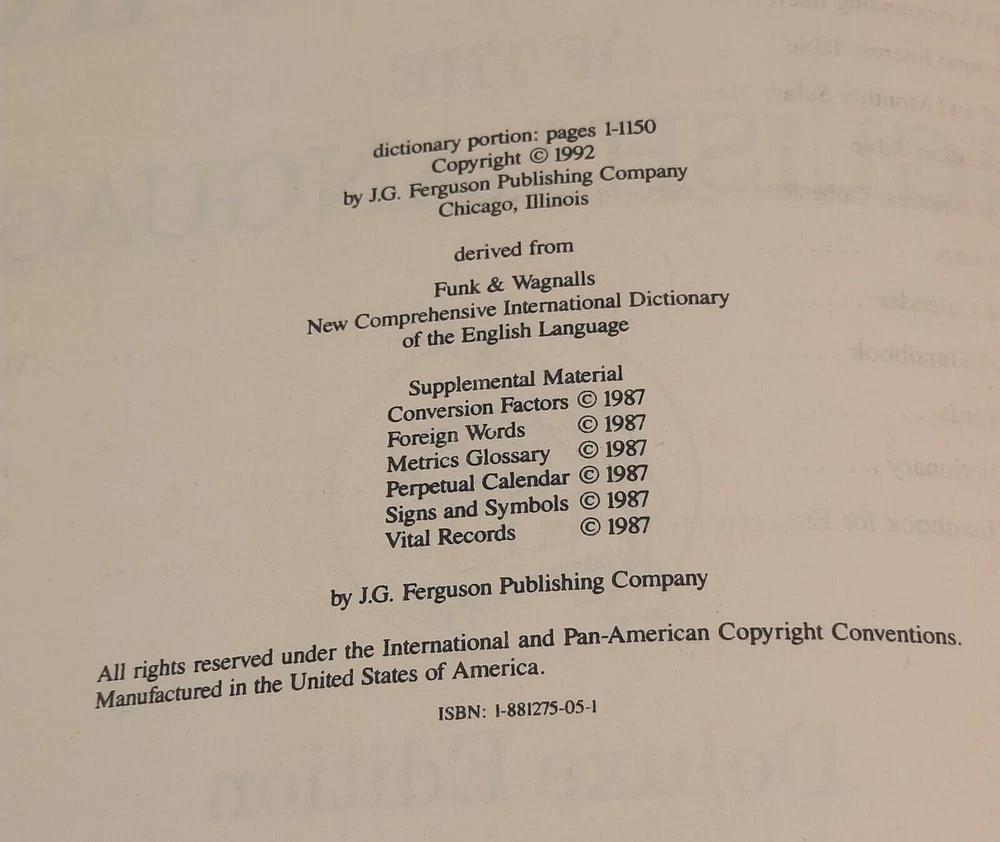 Enhance your vocabulary with this 1992 Webster's Dictionary Deluxe Edition Pamco Leather Bound. This specialized dictionary is perfect for advanced/proficiency level English learners. The dictionary features an illustrated and easy-to-use format for quick and efficient learning. With a source language of English, this dictionary is perfect for general knowledge, spelling, and grammar. It has a faux leather bound and Pamco leather bound format that adds durability to the book. This dictionary is a must-have for anyone who wants to expand their vocabulary and improve their English skills. Thanks!