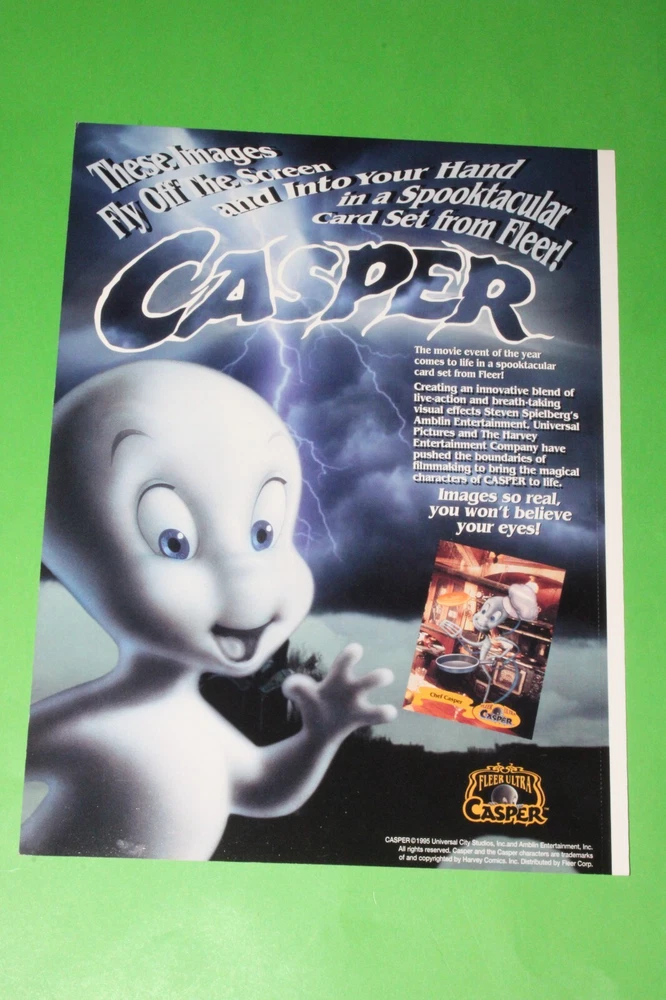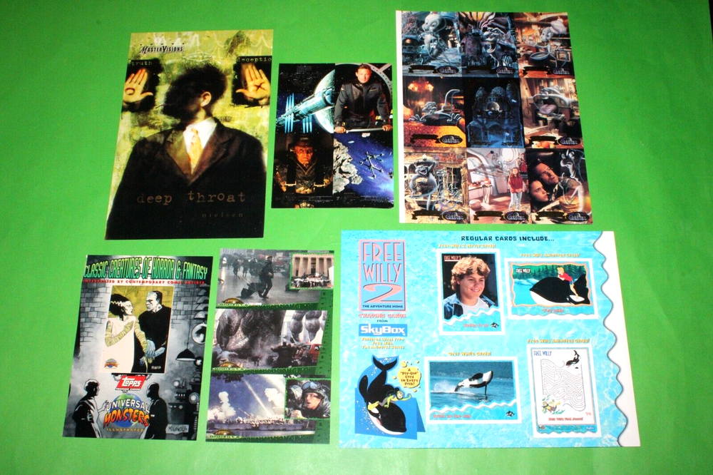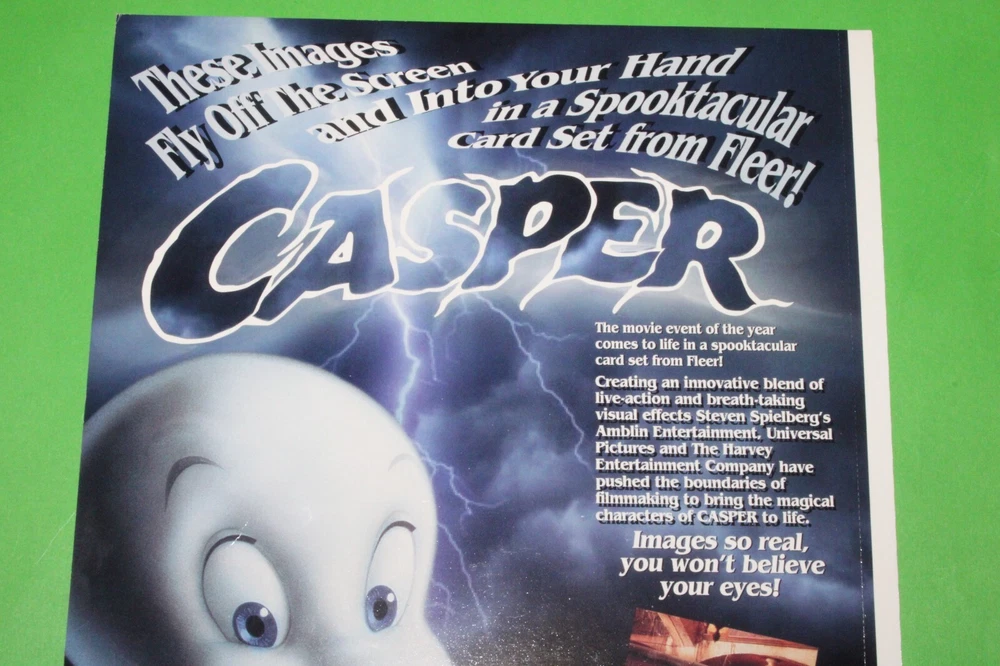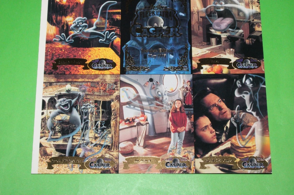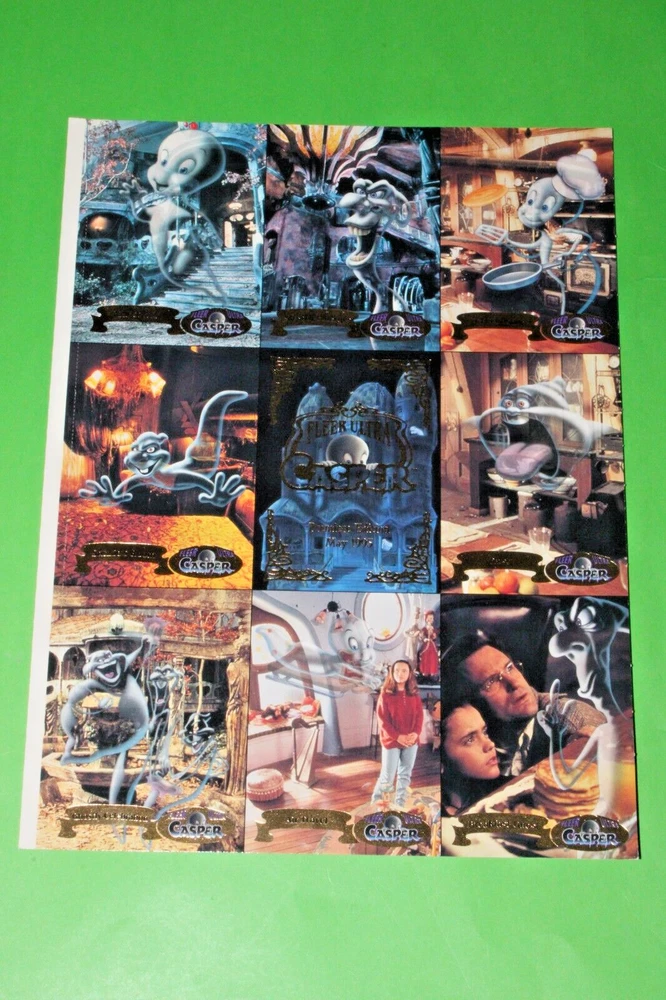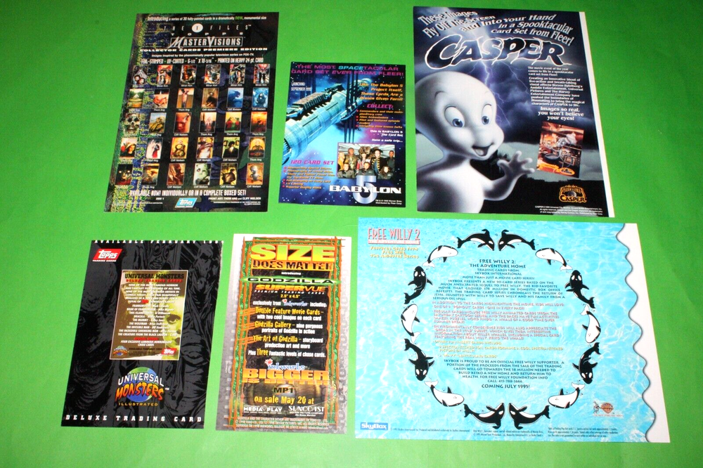 THIS IS THE BEAUTIFUL 1994 1995 Fleer CASPER, GODZILLA, X-FILES, UNIVERSAL MONSTERS, BABYLON 5, FREE WILLY 2 + MORE 6 Uncut Promo CARD Sheets! YOU WILL RECEIVE ALL 6 SHEETS AS SEEN IN THE PICTURES. THESE PROMO CARDS ARE ONE OF THE BEST AND HARDEST FIND OUT THERE OF THE MOVIE PROMO CARDS. THIS CARD FEATURES CASPER, GODZILLA, X-FILES, UNIVERSAL MONSTERS, BABYLON 5, FREE WILLY 2. THESE CARDS WERE SET UP AS A PROMO CARDS FOR THE CARD SERIES BACK IN 1994 AND 1995 SO THESE CARDS ARE GETTING HARDER AND HARDER TO FIND GOING ON 30 YEARS OLD NOW! SO GET THIS GREAT CARD SET NOW BEFORE IT BECOMES IMPOSSIBLE TO GET. WITH THERE BEING 6 SHEETS THE SHEETS CONDITION VARIES SO PLEASE LOOK THE PICTURES AND DECIDE FOR YOURSELF. I DO COMBINE SHIPPING ON ALL MY ITEMS USING THE EBAY CART METHOD ONLY. IF YOU HAVE ANYMORE QUESTIONS PLEASE FEEL FREE TO ASK. THANX FOR LOOKING AND HAPPY BIDDING! WE NOW HAVE A 30 DAY MONEY BACK RETURNS POLICY IN PLACE. YOUR ITEM MUST BE IN THE EXACT SAME CONDITION AS WHEN WE SHIPPED IT OUT TO YOU FOR IT TO BE RETURNED. ALL ITEMS ARE MINT TO NEAR MINT UNLESS OTHERWISE STATED IN THE AUCTION. WE DO SHIP OUT OF THE COUNTRY, TO MOST PLACES, AND USE THE EBAY GLOBAL SHIPPING PROGRAM FOR MOST LARGE ITEMS AND EVEN SMALL ITEMS IF REQUESTED. IF YOU HAVE QUESTIONS WE WILL TRY TO GET BACK WITH YOU WITHIN 24 HOURS IF NOT MUCH SOONER AND DO HAVE A PHONE NUMBER TO TALK RIGHT OVER THE PHONE IF REQUESTED. WITH THOUSANDS OF CARDS AND COLLECTIBLES I'M SURE YOU WILL HAVE MORE QUESTIONS SO FEEL FREE TO EMAIL AND ASK ANYTIME. :)