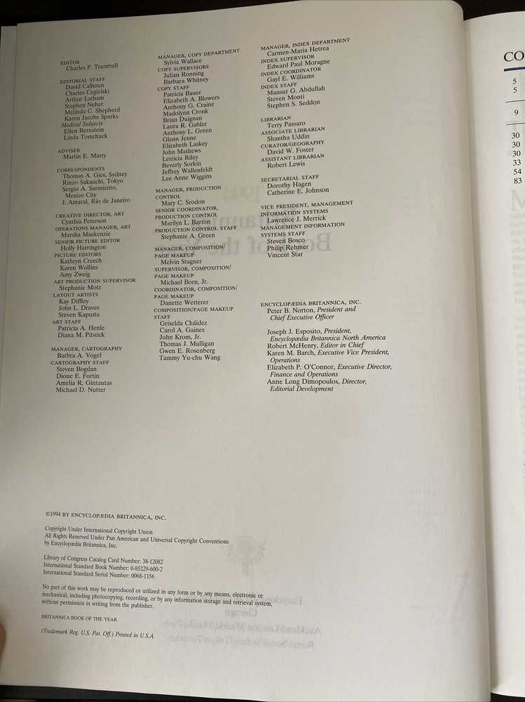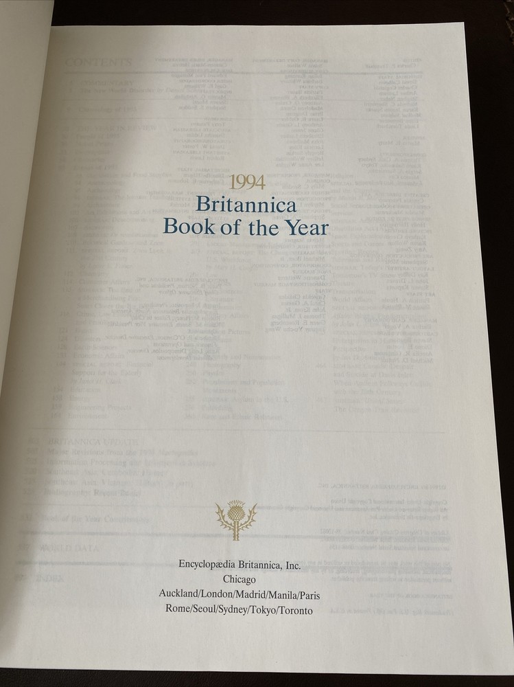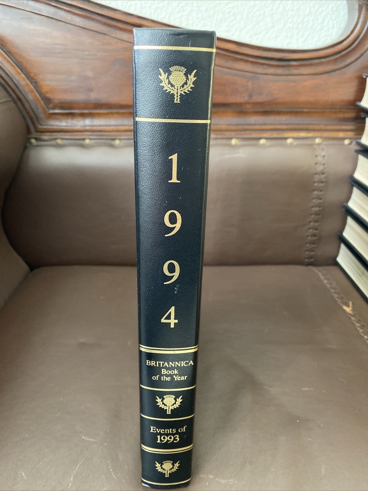 1994 Britannica Book World Data. Leather Bound/Hardcover.. Condition is Like New. Shipped with USPS Media Mail.