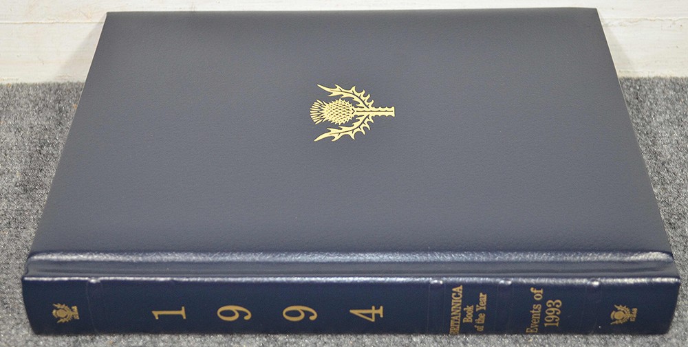 1994 Britannica Book of the Year for events of 1993 - Leather Bound. Very Good Condition, looks like it was not used! This makes a great birthday gift for someone born in 1993. Thanks for looking at my items. Colors of items may vary due to lighting, photography, and computer screen color variations. Please check photo's carefully as that is part of the description and are photo's of the actual item you will receive. If it is not in the photo it is not included, please check closely. We reserve the right to choose the shipping method unless you send us a note requesting a quote on a specific shipping service prior to your purchase. Please check out my other items as we are listing new items almost daily.