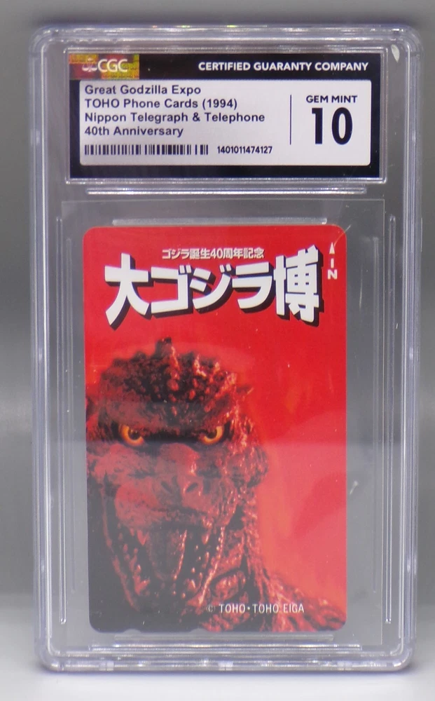 POP 1 CGC 10 GEM MINT Vintage 1994 Japanese Godzilla Promotional Phone card! Fantastic piece of promotional memorabilia; Japan produced tons of a amazing tie in pieces of merchandise! This telephone card was part of a promotion for the 40th Anniversary Great Godzilla Expo. A Great addition to any vintage movie memorabilia collection! Check our other auctions for similar items & to save on shipping. All items are sold as-is and we do not accept returns, so please ask any questions you may have before bidding. ZERO FEEDBACK or other questionable bidders, please email to obtain permission to participate in our auctions BEFORE bidding. Please feel free to stop by our RETAIL LOCATION to view items in person.