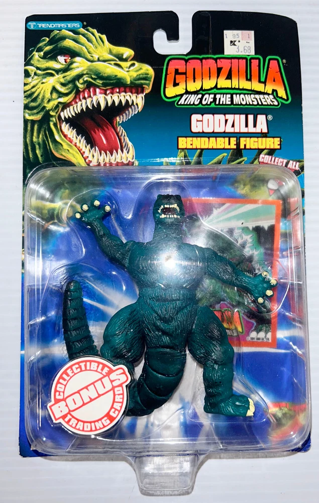 Up for sale is this MOC Trendmasters Godzillaa bendable DVD. Toy is new on card. Bubble is nice, however the glue has dried on the side and bottom, and bubble has started to lift. Buy It Now for $35 or Make Your Best Offer! PLEASE NOTE THAT THERE ARE NO RETURNS ON ARTWORK OR TOYS. This item will ship by itself, but shipping may be reduced for multiple purchases. Shipping for this item will be 11 bucks more, and will arrive via USPS. This price includes confirmation. eBay requires a method of shipment but I’m not sure it will be by Priority Mail. I will combine shipping for multiple wins, and will ship to all 50 states as well as internationally, but those outside the U.S. please contact me before bidding. I am at this point forward ONLY ACCEPTING PAYPAL. Any questions just let me know, please. I will likely contact you within 24 hours (usually much less) of your email. If there is a problem with your item PLEASE contact me and we will definitely work out a solution. I want your purchase and buying experience to be to your satisfaction! Thanks and God bless! ...filcore out.