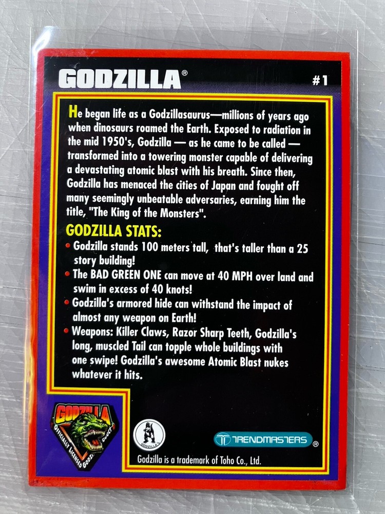 1994 Trendmasters Godzilla King Of The Monsters #1 card...