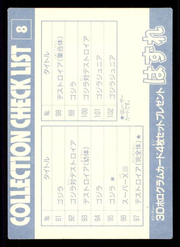 1995 Amada Godzilla Sticker RARE #8 Checklist