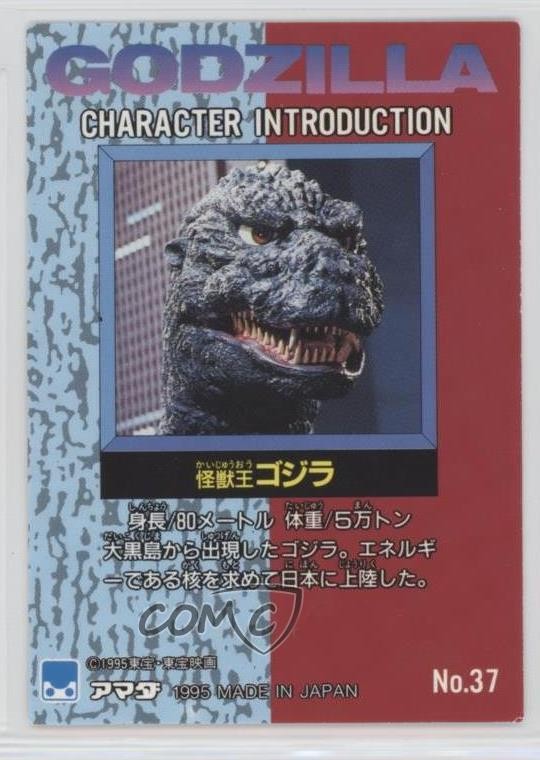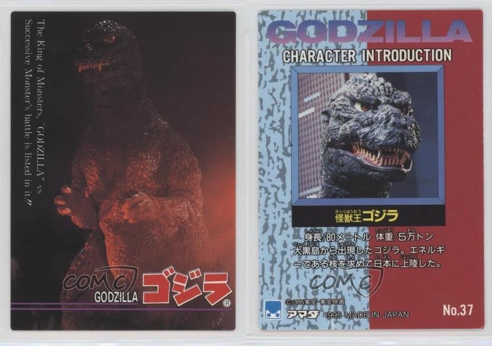1995 Amada Godzilla Story - [Base] #37 Godzilla COMC Item: 41740532 - Non-Sports Card - Featuring Godzilla Search for more: 1995 Amada Godzilla Story Search for more: 1995 Amada Godzilla Story - [Base] View all of our Listings Auctions Buy It Now About Us Located in the beautiful Pacific Northwest, COMC (Check Out My Cards) is the world's largest consignment service for trading card singles. More than 10,000 people have used our consignment service to list over 50 million trading cards. Find out how we can help you consign your items on eBay by contacting us through eBay messaging. COMC -- "The Safe & Easy Way to Buy & Sell" Raw Condition for Modern Cards Unless otherwise noted, raw modern cards are listed in Near Mint-Mint condition or better. A NM-MT card appears to be Mint at first glance, but upon closer inspection, may exhibit some of the following: minor print defects (e.g. roller marks, print line, dimple), minor scratches, slight edge wear, and slight corner wear. Centering is clearly visible in the images provided and does not factor into our condition assessment. Raw Condition for Vintage Cards Unless otherwise noted, raw vintage cards are listed in Excellent condition or better. An EX card may exhibit some of the following: minor rounding of corners, surface wear, print defects, light scratches, and slight edge wear/chipping. Centering is clearly visible in the images provided and does not factor into our condition assessment. Domestic Shipping Combined shipping for multiple items is available. To receive combined shipping, please ensure all desired items are in your eBay shopping cart before proceeding to checkout. eBay limits orders to 40 items per order. We automatically combine multiple orders placed on the same day. If you place multiple orders on the same day, please contact us to request a refund of applicable shipping costs. Signature confirmation may be required on invoices over $400. All cards are protected and shipped securely. International Shipping COMC offers eBay's International Shipping (EIS) for international orders under $2,500* (see country exceptions below). All duties and import fees are paid at checkout; in the rare event that there are additional import fees upon delivery, these are borne by the buyer. EIS packages route through a shipping hub in Erlanger, KY before shipping to their final destination. Please note that EIS does not allow for combined shipments. The shipping rates are determined by eBay and cannot be adjusted. *Maximum sale price exceptions: Colombia, Kuwait ($2,000); Taiwan ($1,539); Chile, Costa Rica, Guatemala, Honduras, Trinidad and Tobago ($1,000); Antigua and Barbuda, Aruba, Belize, Dominica, Grenada, Philippines, Saint Kitts and Nevis, Saint Lucia, Montserrat, Turks and Caicos Islands ($500); Dominican Republic, El Salvador ($200). Please request a shipping quote through eBay messaging for orders that exceed the maximum sale price supported by eBay's International Shipping. You will be responsible for all duties and import fees for international orders shipped outside the EIS. All cards are protected and shipped securely. Payment COMC does not accept offers on our cards through our eBay storefront. COMC utilizes eBay’s managed payments system. If you are experiencing difficulties making a payment, please contact eBay for assistance. Return Policy Returns are only accepted on the rare occasion the item is not as described. If you are making a return, please initiate the return process through eBay so a mailing label can be provided for you. Prior to listing, our expert team carefully assessed this item to represent it accurately. Please review the description and high-definition images prior to purchasing to ensure this item meets your satisfaction. We welcome you to contact us if you have further questions about this item. Trust and Integrity COMC carefully assesses each item consigned to us to prevent fraudulent items from entering the marketplace. If you believe an item offered on COMC may be fraudulent, please contact us with details so we can investigate the issue. Items we determine are outside our supported items policy may be removed. Last Modified: 6/10/2025 11:58:21 AM PDT