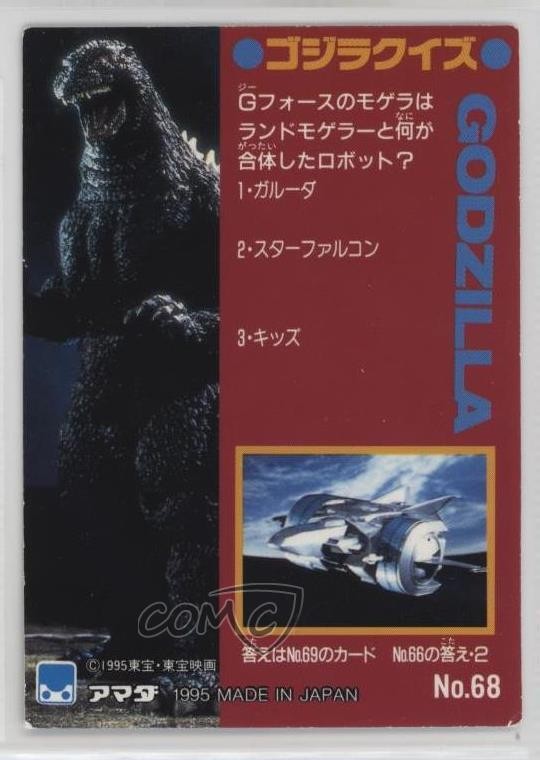 Absolutely love this vintage Godzilla card! The artwork is stunning, capturing the king of monsters in all his glory. Perfect addition to any collector’s set—great condition, sharp details, and a must-have for fans of the franchise. Highly recommend grabbing this piece of 90s nostalgia!