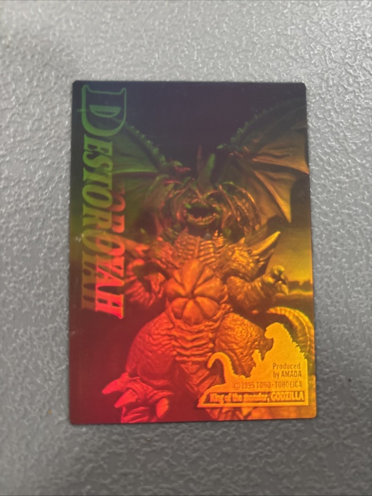The 1995 Amada Toho Destoroyah Hologram trading card is a highly collectible item featuring the iconic Godzilla King of the Monsters franchise. Manufactured by Amada Printing MFG in 1995, this non-sport trading card showcases a hologram design that sets it apart from other cards in the collection. With its unique hologram feature and tie-in to the popular Godzilla series, this card is a must-have for fans and collectors alike.