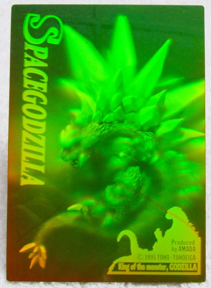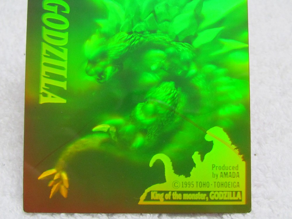 1995 Amada Toho Space Godzilla Hologram - Godzilla King of the Monsters I list all my cards as 'Heavily played (Poor)' even if they might be in mint condition. Please check the pics carefully for defects. If I notice anything out of the ordinary I will add extra pics. All Cards are placed in a new penny sleeve, followed by a new semi rigid holder and then placed in between 2 thin layers of cardboard before shipping. ________________________ PAYMENT ________________________ * Payment must be received within 7 days or I will re-list the item/s and cancel the transaction to recover my lost fees. * If you're buying more than one item then please pay for everything in one combined invoice. ________________________ SHIPPING ________________________ * I ship Worldwide! * Shipping within the USA is FREE! International shipping is fairly calculated based on your location. ________________________ OTHER ________________________ * Picture is of the actual Item being sold. Unless there are multiple quantities available, in which case you can expect them all to be in similar condition compared to the pic shown.