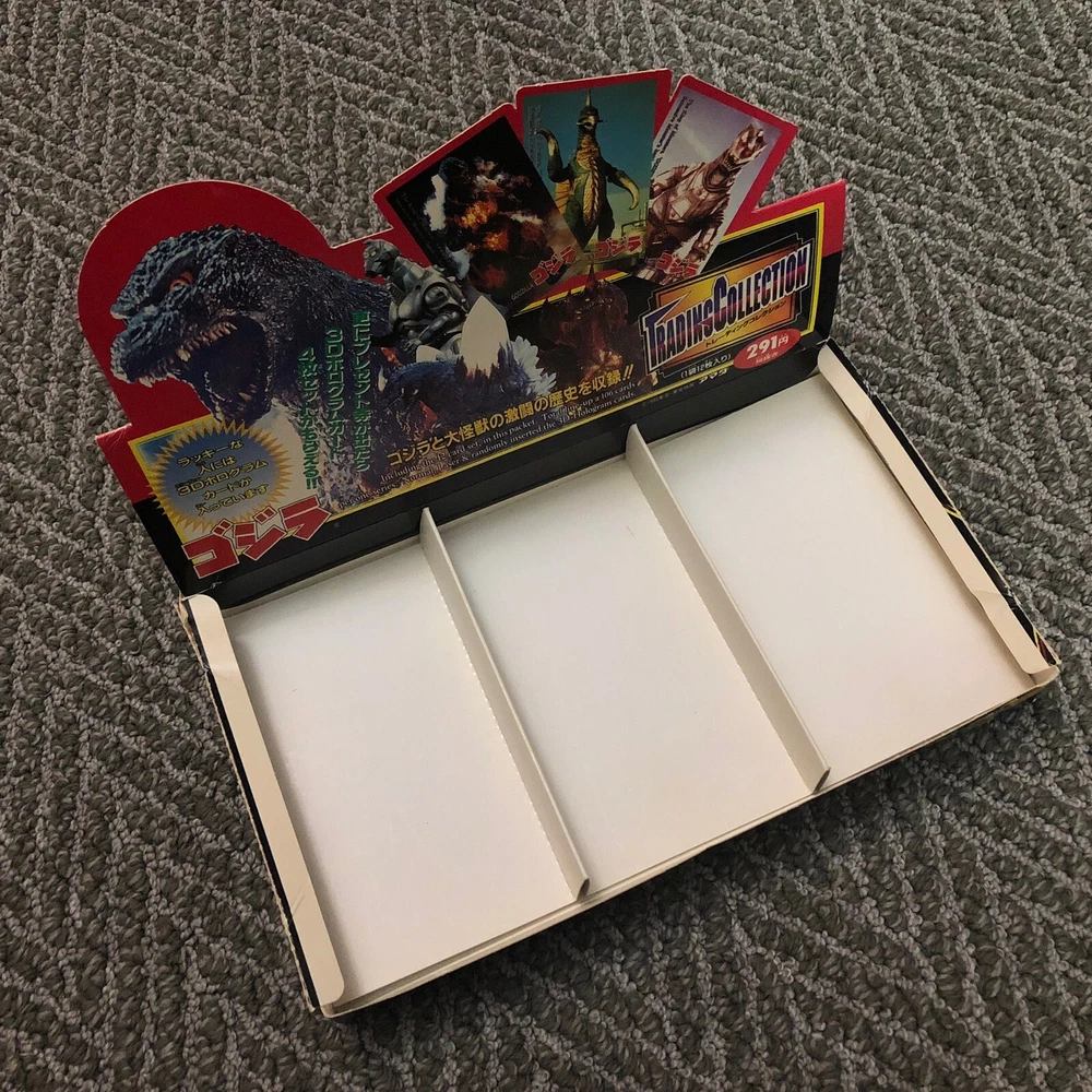 Godzilla • Godzilla Trading Collection EMPTY Box . - This is for the empty box and single wrapper only, both are empty. • 1995, Toho. Condition Used, open, and in good condition. Fading to areas of the box and creases, folds, and other damage is present. Flaws may include whitening to edges, surface scratches, or more. Please see every photo attached for a better understanding of the condition! Shipping • All items come from a smoke and pet free home! • I ship all items via USPS within 3 business days. • Please look at the variety of items I offer to save on shipping!
